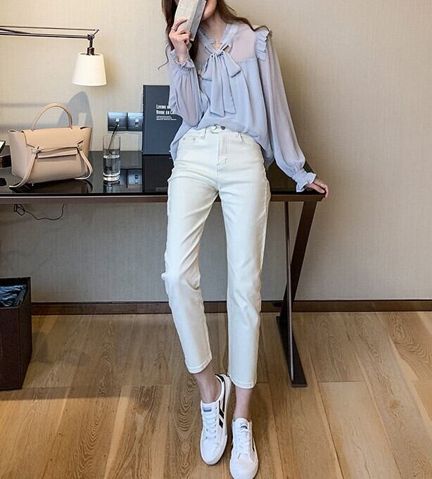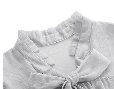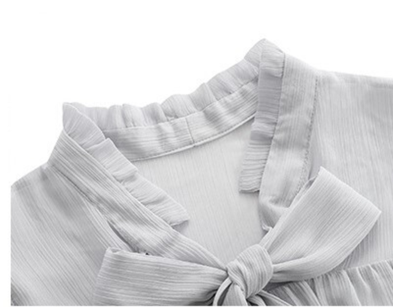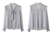 可愛いフリルと大きなリボンが特徴の透け感のあるシアーブラウス