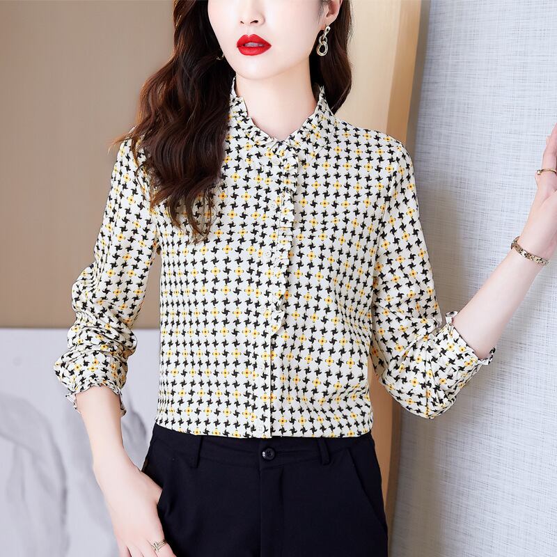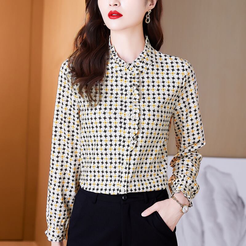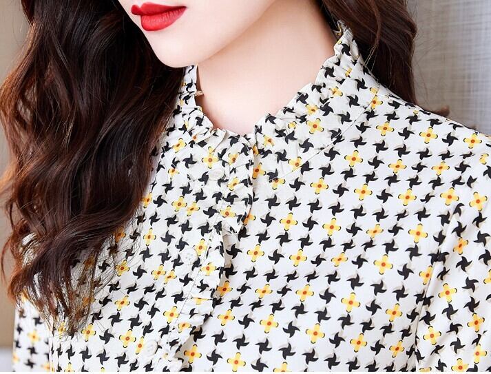ブラウス レディース シャツ トップス 人気 おすすめ おしゃれ お洒落 激安 安い 送料無料 プチプラ 長袖 ロング 細身 美シルエット 華奢見え フリル スリムフィット スタンドカラー 花柄 韓国 可愛い かわいい カジュアル 大人 上品 きれいめ シンプル クラシック エレガント こなれ感 フェミニン モテ 普段使い 女子会 デート オフィス お出かけ 夏 秋 20代 30代 40代 50代 ママ S M L XL 2XL 黄色 イエロー