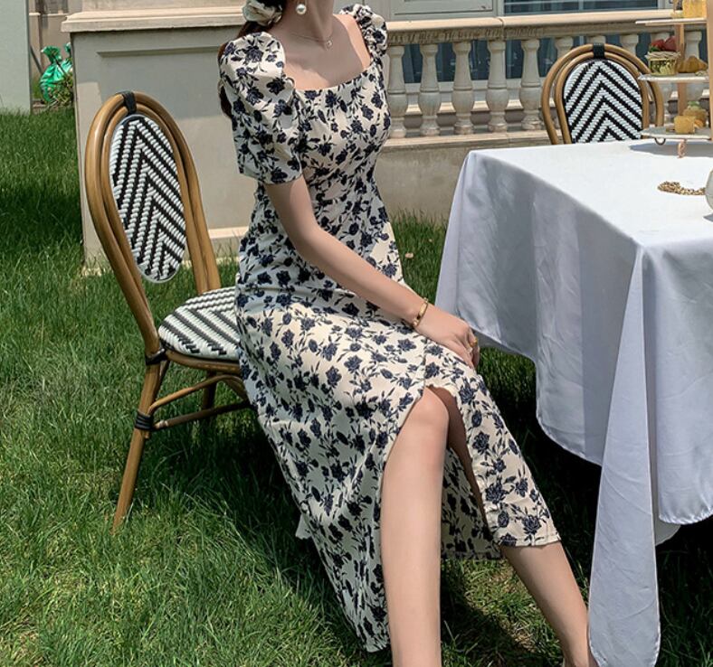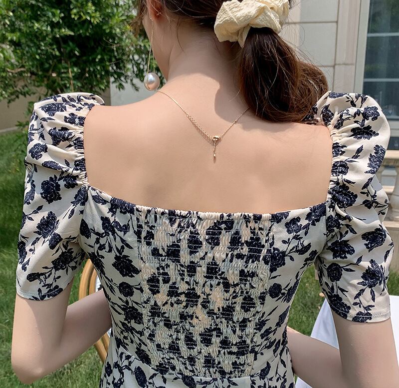 ワンピース 上着 人気 おすすめ おしゃれ お洒落 激安 安い 送料無料 プチプラ 半袖 スクエアネック 柄 プリント ウエスト スリット パフスリーブ ボリュームスリーブ フラワー 花柄 ポリエステル 可愛い かわいい 韓国 きれいめ 大人 上品 春 スプリング サマー 夏 レディース 女性用 20代 30代 S M L XL 白 ホワイト 黒 ブラック 大人カラー 春カラー デート フェミニン お出かけ