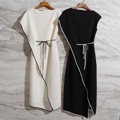 ワンピース 上着 人気 おすすめ おしゃれ お洒落 激安 安い 送料無料 プチプラ 半袖 ボート ネック リボン アシメ ロングスカート 無地 ポリエステル 韓国 シンプル きれいめ 大人 上品 フォーマル 春 スプリング サマー 夏 レディース 女性用 20代 30代 S M L XL 2XL 3XL 白 ホワイト 黒 ブラック ベージュ オフホワイト 大人カラー バイカラー モノトーン フェミニン オフィス エレガント シック