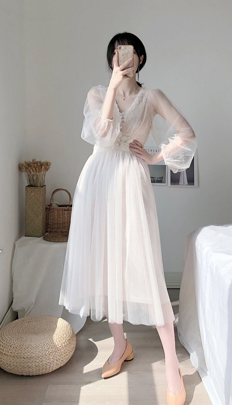 ワンピース 上着 人気 おすすめ おしゃれ お洒落 激安 安い 送料無料 プチプラ 長袖 ロング Vネック ボリュームスリーブ ウエスト 無地 シアー レース 透け オーガンザ 可愛い かわいい 韓国 シンプル きれいめ 大人 上品 春 スプリング サマー 夏 結婚式 レディース 女性用 20代 30代 S M L XL 白 ホワイト ベージュ オフホワイト 春カラー デート フェミニン エレガント シック