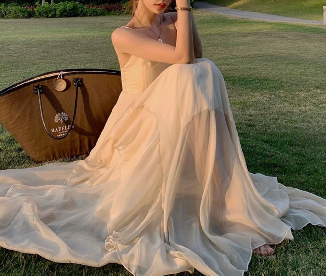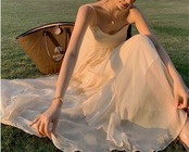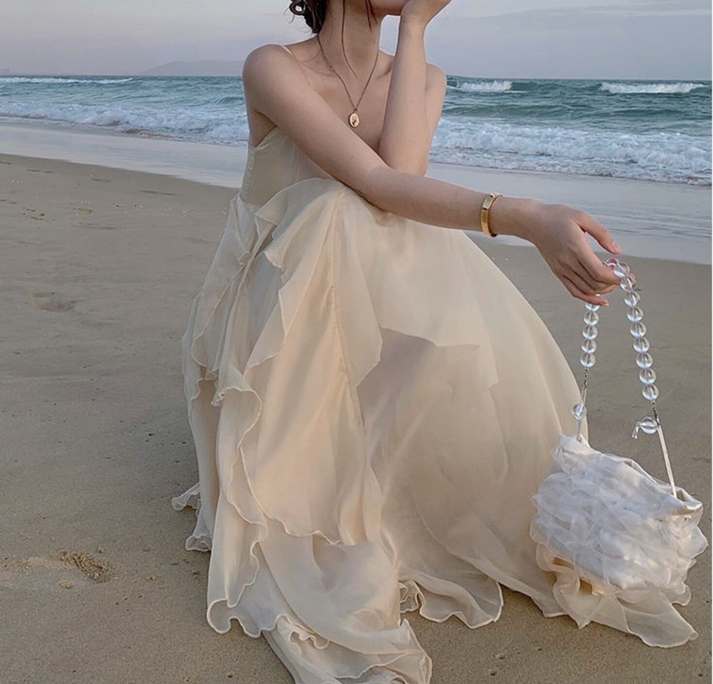旅行やビーチデートにぴったりなふんわりキャミワンピース。