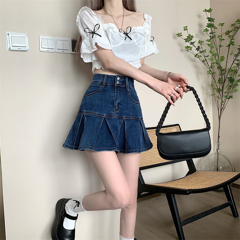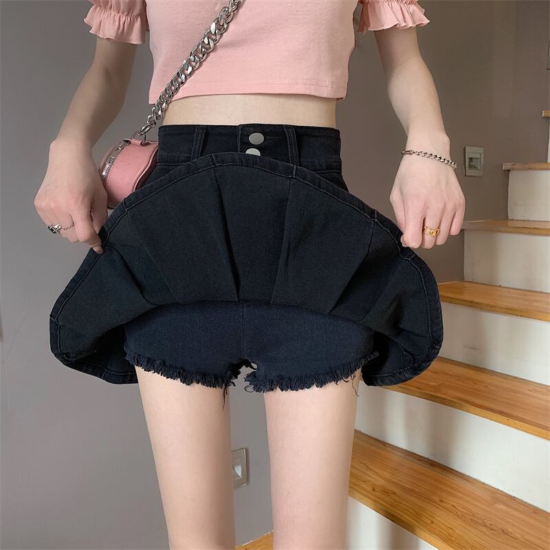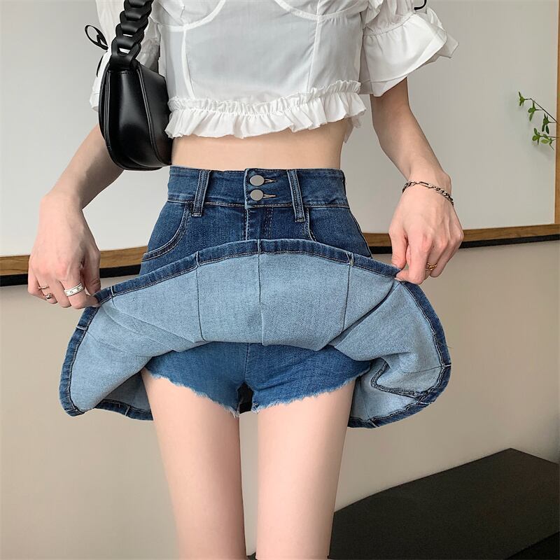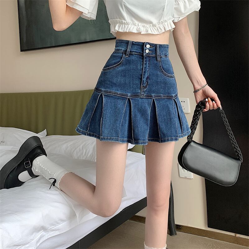 スカート ボトムス ミニスカート デニム ブルー プリーツ テニススカート インナーパンツ付き 切り替え ダメージ ウォッシュ加工 ヴィンテージ風 大人女子 カジュアル セクシー HIPHOP スポーティー お洒落 おしゃれ オシャレ 可愛い かわいい レディース 送料無料 春 夏 スプリング サマー 海 ビーチ リゾート プール フィット スリム 細身 背中あき 肌見せ 露出 20代 デート ランチ 買い物 ショッピング 観光 旅行 韓国 ハイウエスト 脚長効果 ウエストマーク ウエスト切り替え