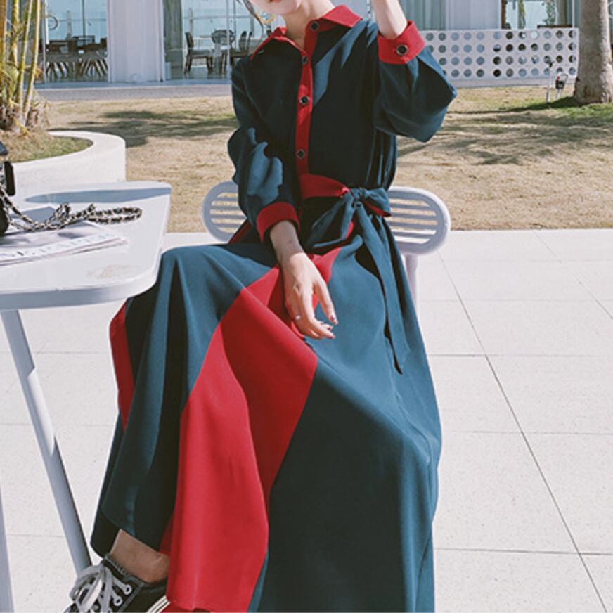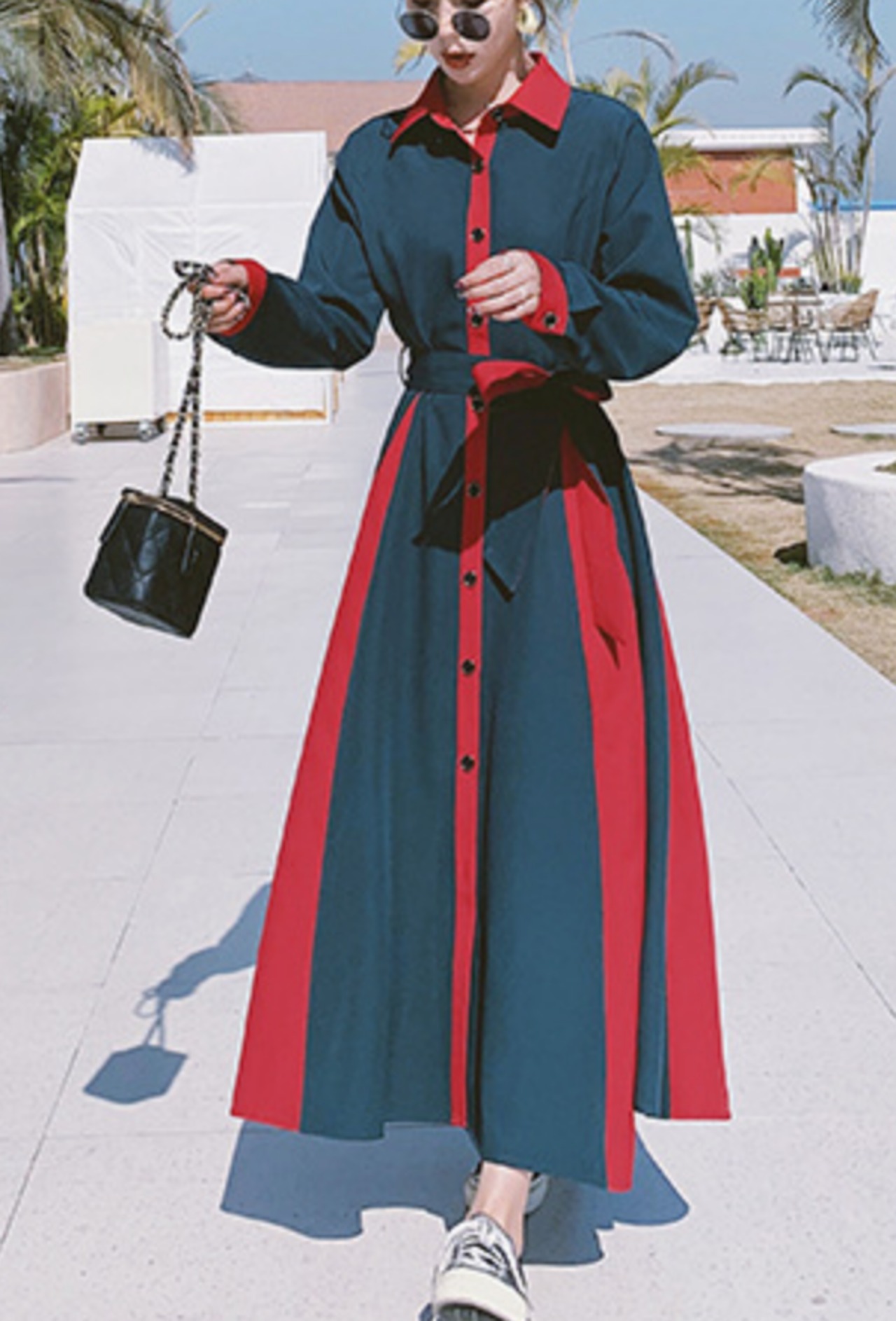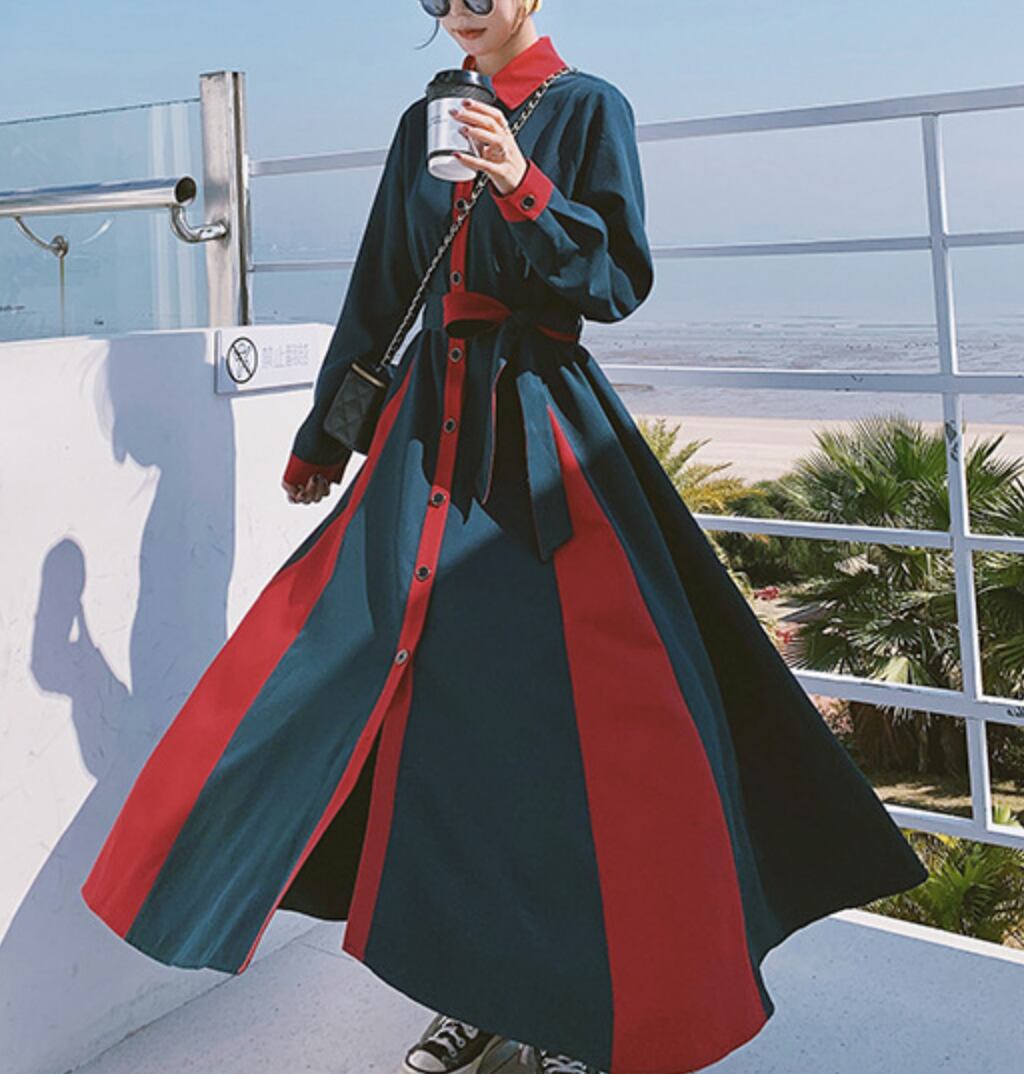 ワンピース 上着 人気 おすすめ おしゃれ お洒落 激安 安い 送料無料 プチプラ シャツ 長袖 ロング マキシ オープンカラー オーバーサイズ ウエスト ロングスカート 開襟 柄 ストライプ リボン ポリエステル 春 スプリング 秋 オータム レディース 女性用 20代 30代 S M L XL 大きめ ゆったり 赤 レッド 緑 グリーン 大人カラー バイカラー 秋カラー フェミニン お出かけ