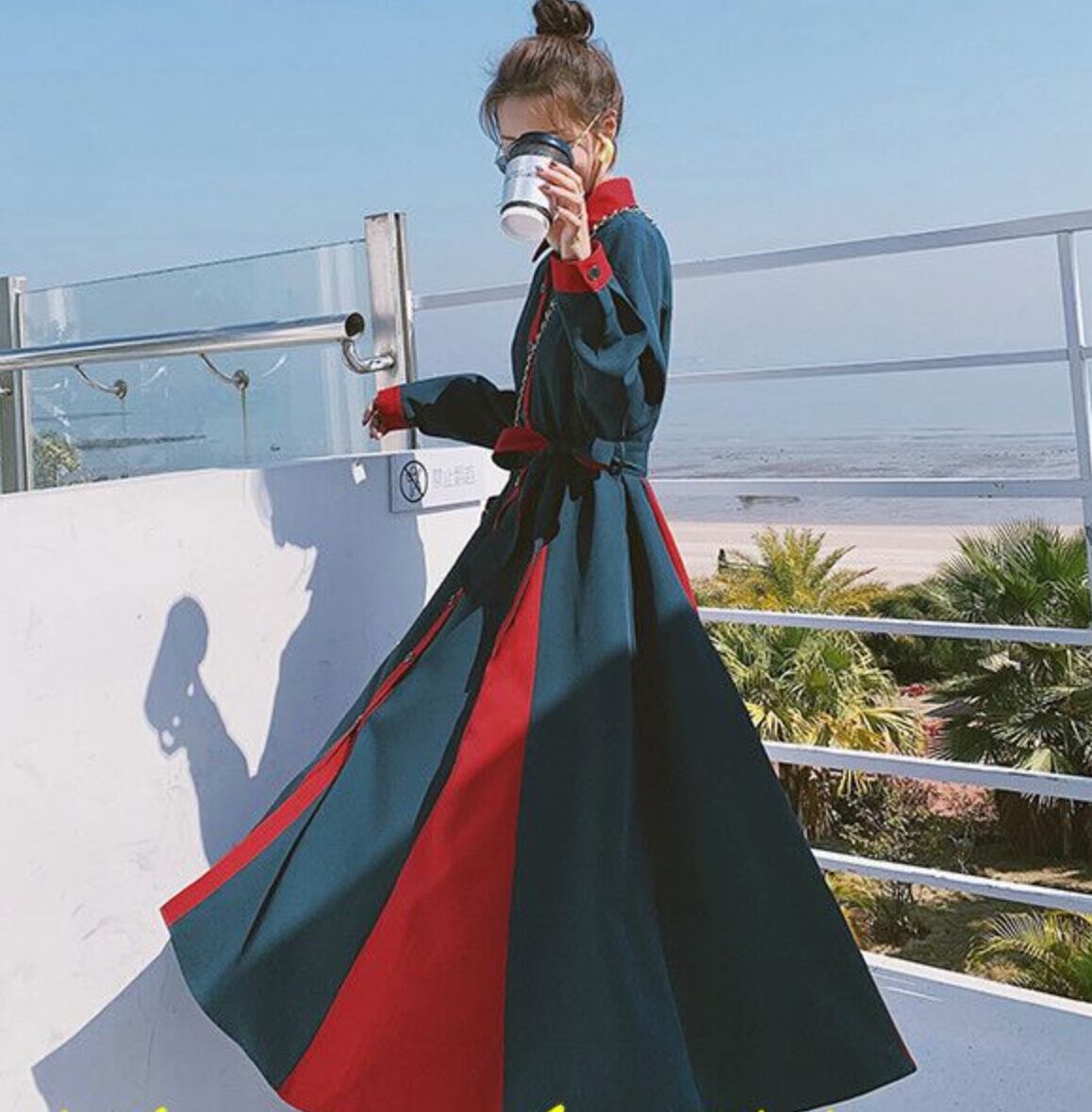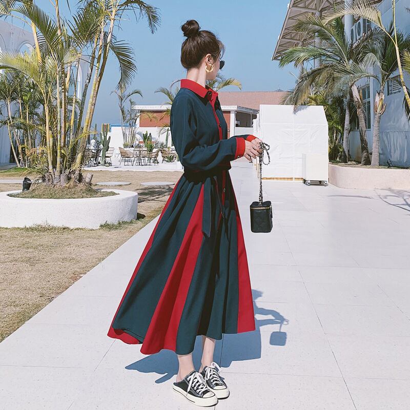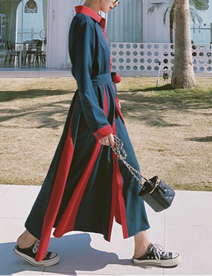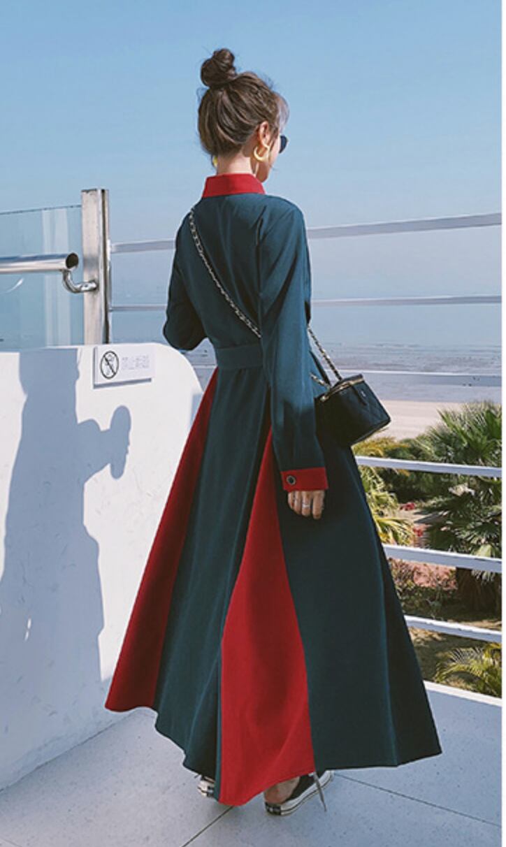 ワンピース 上着 人気 おすすめ おしゃれ お洒落 激安 安い 送料無料 プチプラ シャツ 長袖 ロング マキシ オープンカラー オーバーサイズ ウエスト ロングスカート 開襟 柄 ストライプ リボン ポリエステル 春 スプリング 秋 オータム レディース 女性用 20代 30代 S M L XL 大きめ ゆったり 赤 レッド 緑 グリーン 大人カラー バイカラー 秋カラー フェミニン お出かけ