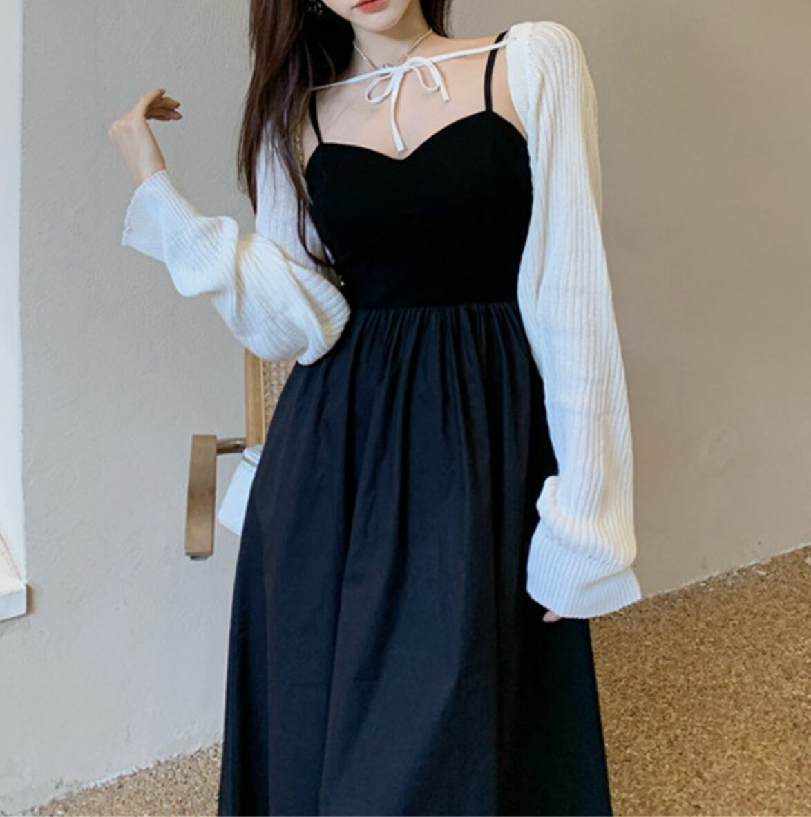 ワンピース 上着 人気 おすすめ おしゃれ お洒落 激安 安い 送料無料 プチプラ セットアップ 長袖 ロング リブニット 肩出し ノースリーブ Vネック 無地 リボン コットン 綿 ニット セーター 可愛い かわいい 韓国 シンプル カジュアル きれいめ 春 スプリング 秋 オータム レディース 女性用 20代 30代 S M フリーサイズ 白 ホワイト 黒 ブラック 大人カラー モノトーン デート フェミニン