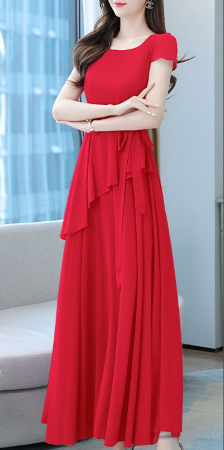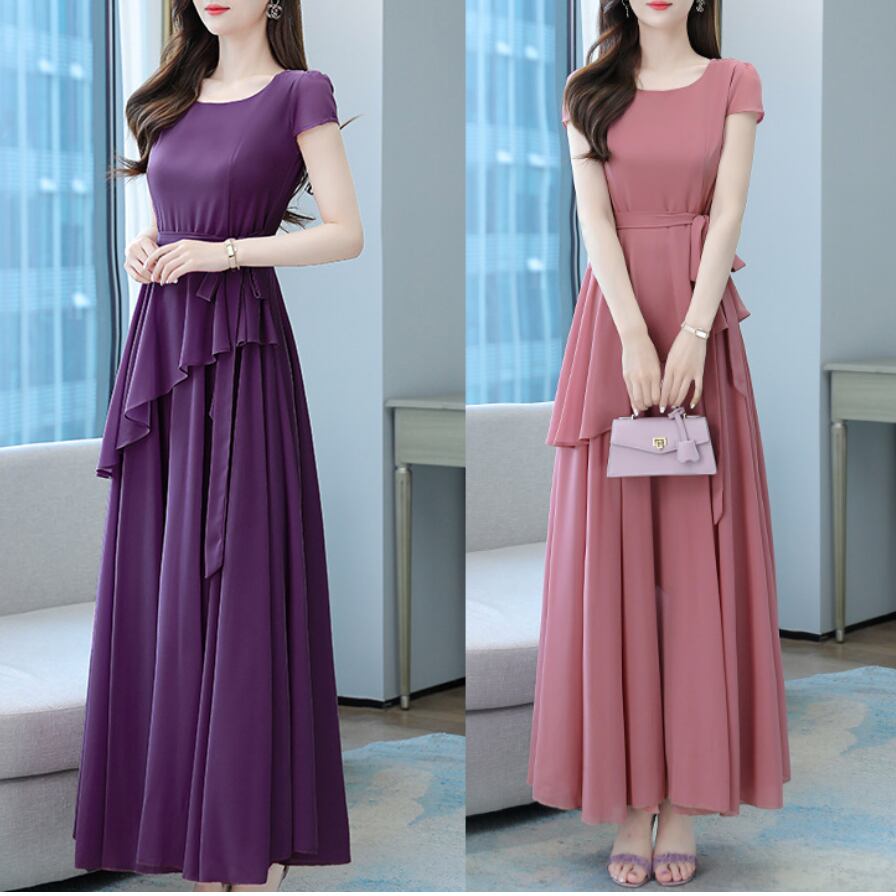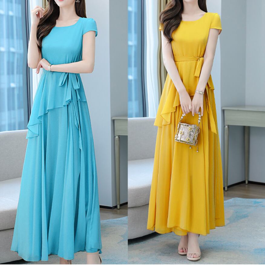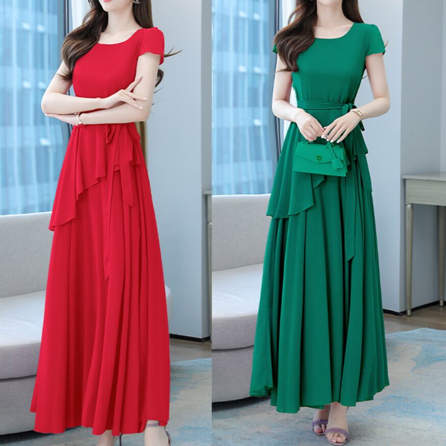 ワンピース 上着 人気 おすすめ おしゃれ お洒落 激安 安い 送料無料 プチプラ 半袖 ラウンドネック 丸首 無地 フリル リボン 可愛い かわいい 韓国 シンプル きれいめ 大人 上品 ロングスカート 春 スプリング サマー 夏 結婚式 レディース 女性用 20代 30代 S M L XL 2XL 3XL 4XL 赤 レッド 青 ブルー 緑 グリーン 紫 パープル 黄色 イエロー カーキ 桃色 ピンク 水色 スカイブルー 大人カラー デート フェミニン エレガント