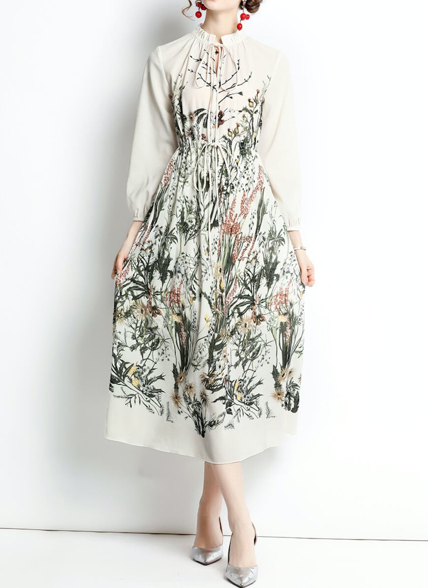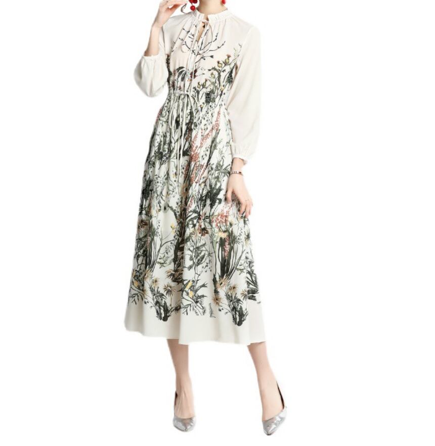 ワンピース 上着 人気 おすすめ おしゃれ お洒落 激安 安い 送料無料 プチプラ ブラウス 長袖 ロング Aライン ラウンドネック ロングスカート ウエスト 丸首 柄 プリント 花柄 リボン ポリエステル 可愛い かわいい 韓国 きれいめ 大人 上品 春 スプリング 秋 オータム レディース 女性用 20代 30代 S M L XL 2XL 白 ホワイト 春カラー デート フェミニン エレガント シック