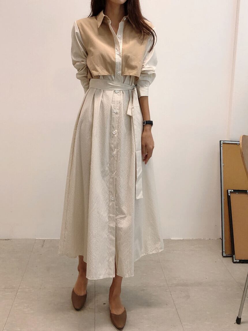 ワンピース 上着 人気 おすすめ おしゃれ お洒落 激安 安い 送料無料 プチプラ ブラウス シャツ 長袖 ロング ロングスカート ウエスト ベルト オープンカラー 開襟 柄 ストライプ リボン コットン 綿 可愛い かわいい 韓国 シンプル 切り替え カジュアル 大人 上品 フォーマル 春 スプリング サマー 夏 レディース 女性用 20代 30代 S M L XL 黒 ブラック ベージュ オフホワイト カーキ 大人カラー 春カラー デート フェミニン オフィス