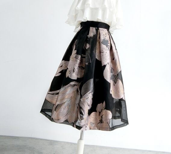 大花柄が存在感抜群なクラシカルなフレアスカートです。