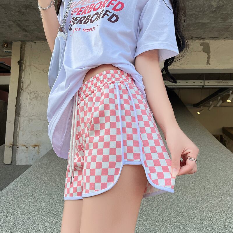 ショートパンツ ボトムス ラフパンツ フレア 市松模様 チェック柄 バイカラー スポーティー カジュアル 運動 ストリート メロウ フレアパンツ スリット ウエストゴム セミフレア パンツ ハイウエスト ストレッチ 美脚 動きやすい 韓国 かわいい 可愛い リラックス きれいめ 楽ちん 春 スプリング 夏 サマー 冬 ウィンター ストリート カジュアル レディース カジュアル ストリート レトロ 美脚 女性用 高校生 黒 ブラック ピンク