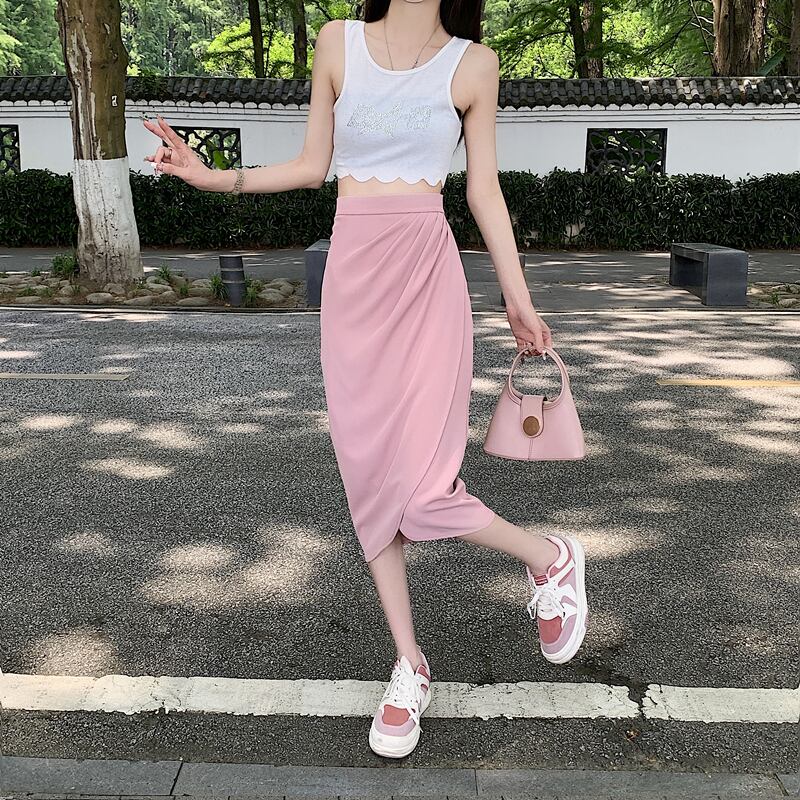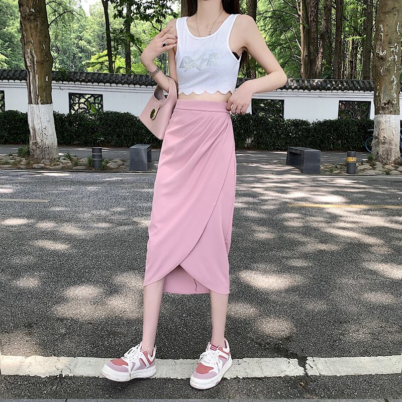 ボディラインを綺麗に見せるラップ風タイトスカートです。