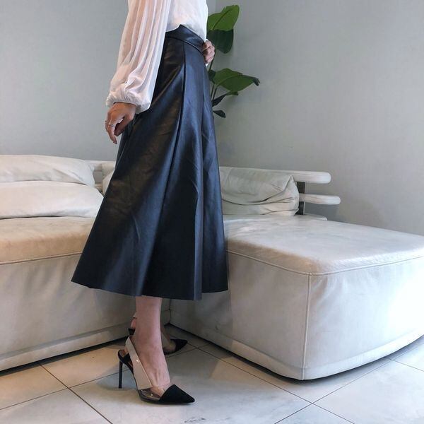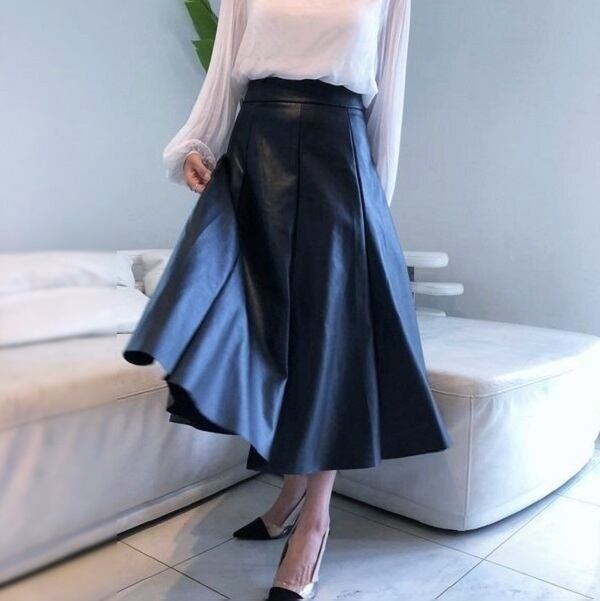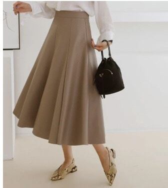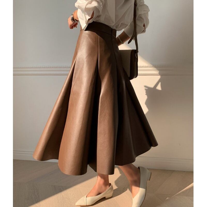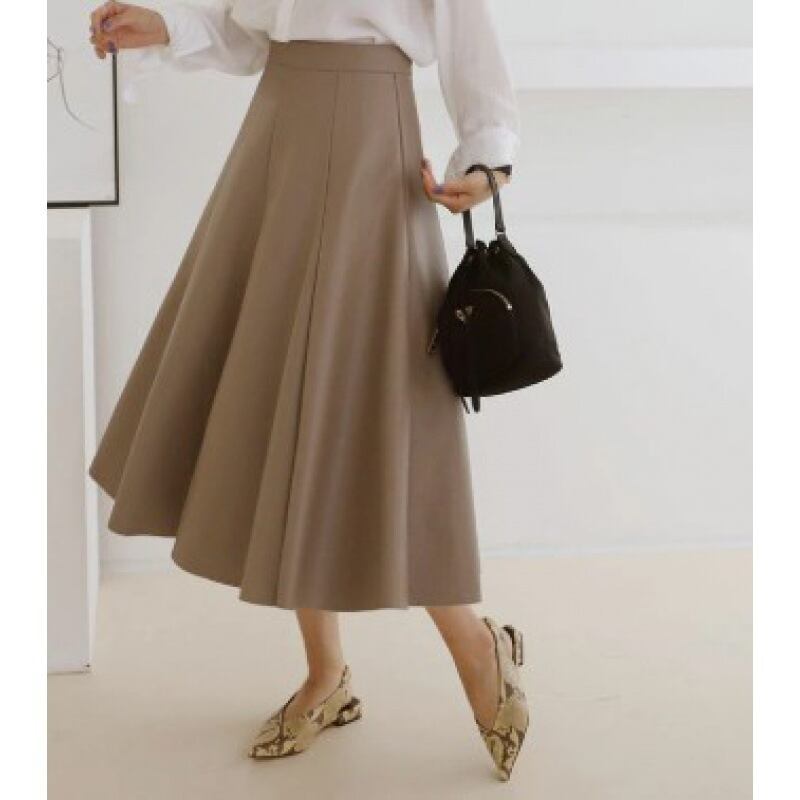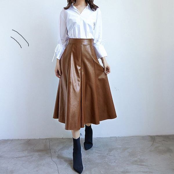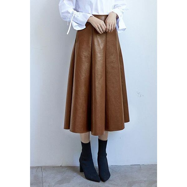 ロング スカート フレア スカート レザー スカート ハイ ウエスト Aライン タック ミモレ 丈 ミドル丈 オフィス スタイル エレガント スタイル カジュアル スタイル 無地カジュアル スタイル レザー 美脚 かわいい 可愛い きれいめ 流行り 韓国 動きやすい入園式 卒園式 オフィス 冬 ウィンター 20代 30代 カジュアル ルームウェア