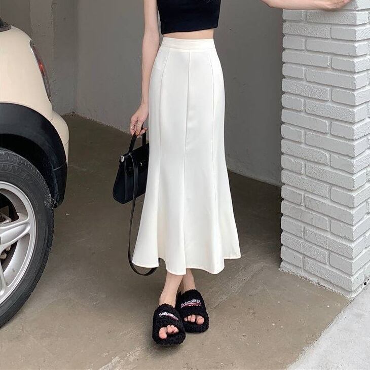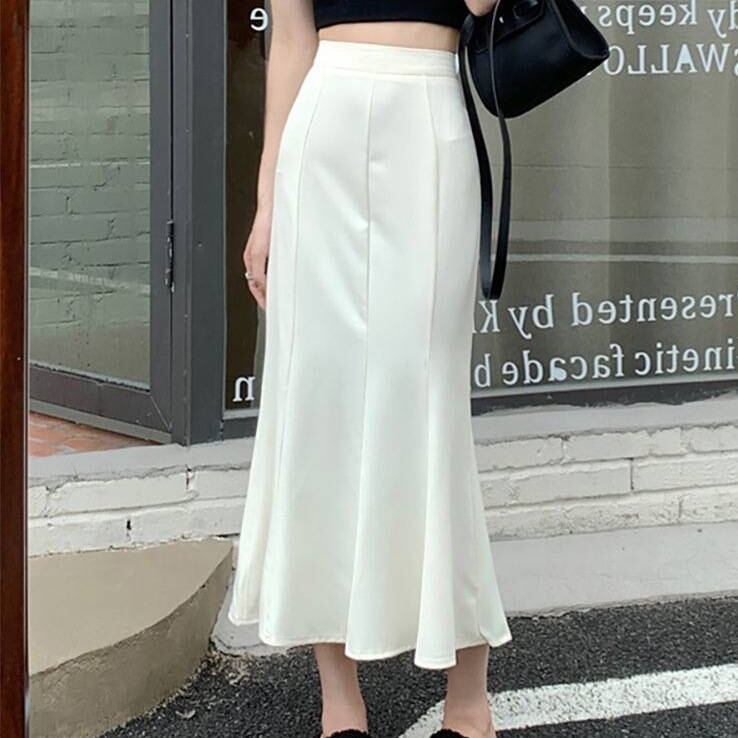 スカート ボトムス ミモレ丈 フレア マーメイド フィッシュテール 切り替え ギャザー ウエストゴム ボリューム モード ハイウエスト ワイド ゆったり ストレッチ 韓国 かわいい 可愛い リラックス きれいめ 楽ちん 春 スプリング 冬 ウィンター ストリート カジュアル レディースこなれ感 着回し クラシカル 上品 女性用 高校生 30代 40代 低身長 ゆったり ゆる ホワイト ブラック