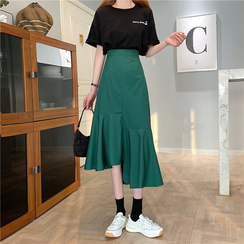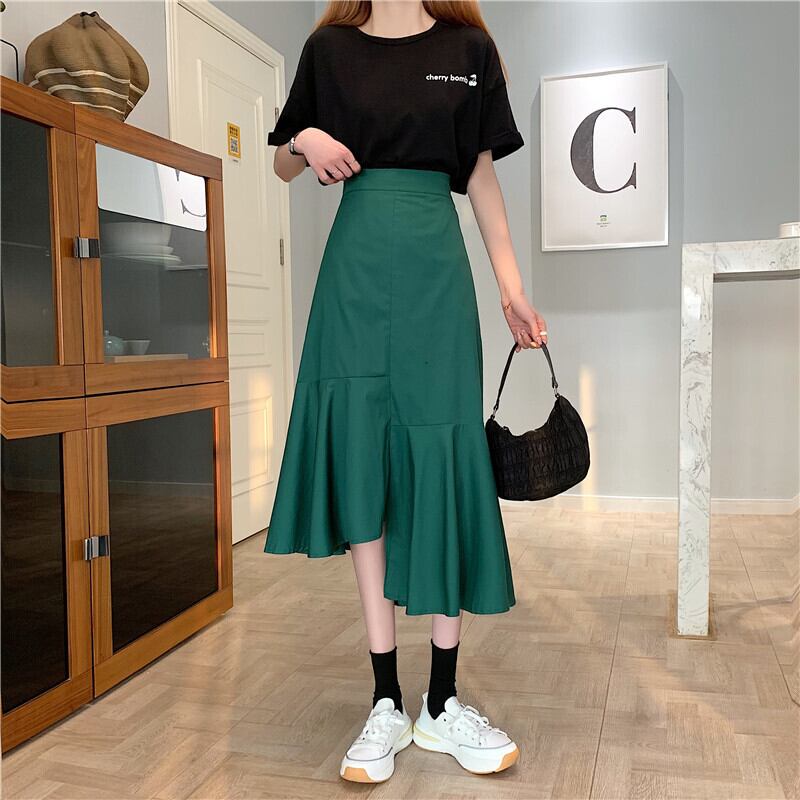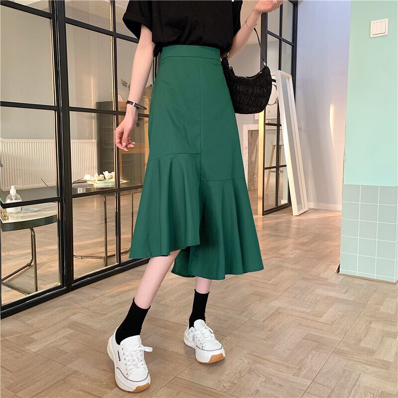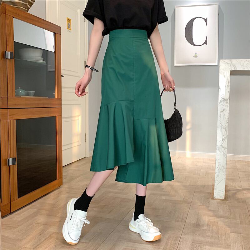 スカート ボトムス ミモレ丈 フレア スカート ギャザー アシンメトリー 切り替え ラップスカート ボリューム モード ハイウエスト ワイド ゆったり ストレッチ 韓国 かわいい 可愛い リラックス きれいめ 楽ちん 春 スプリング 冬 ウィンター ストリート カジュアル レディースこなれ感 着回し クラシカル 上品 女性用 高校生 30代 40代 低身長 ゆったり ゆる 黒 ブラック ホワイト グリーン