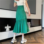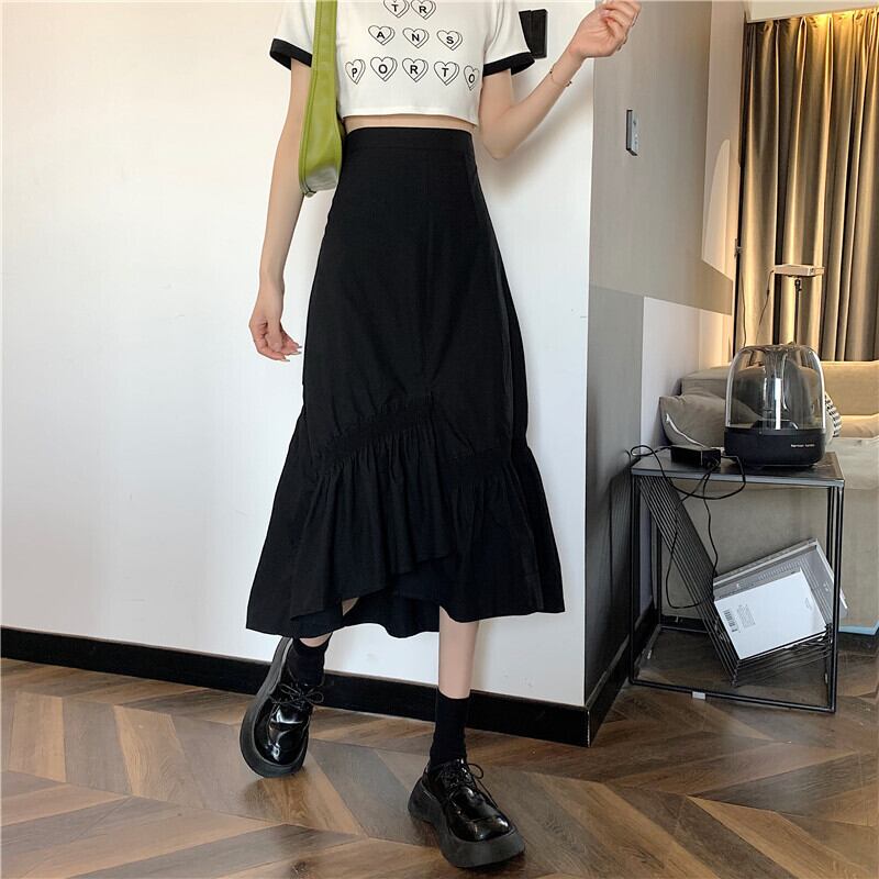 スカート ボトムス ミモレ丈 フレア スカート ギャザー アシンメトリー シャーリング 切り替え ラップスカート ボリューム モード ハイウエスト ワイド ゆったり ストレッチ 韓国 かわいい 可愛い リラックス きれいめ 楽ちん 春 スプリング 冬 ウィンター ストリート カジュアル レディースこなれ感 着回し クラシカル 上品 女性用 高校生 30代 40代 低身長 ゆったり ゆる 黒 ブラック ホワイト グリーン