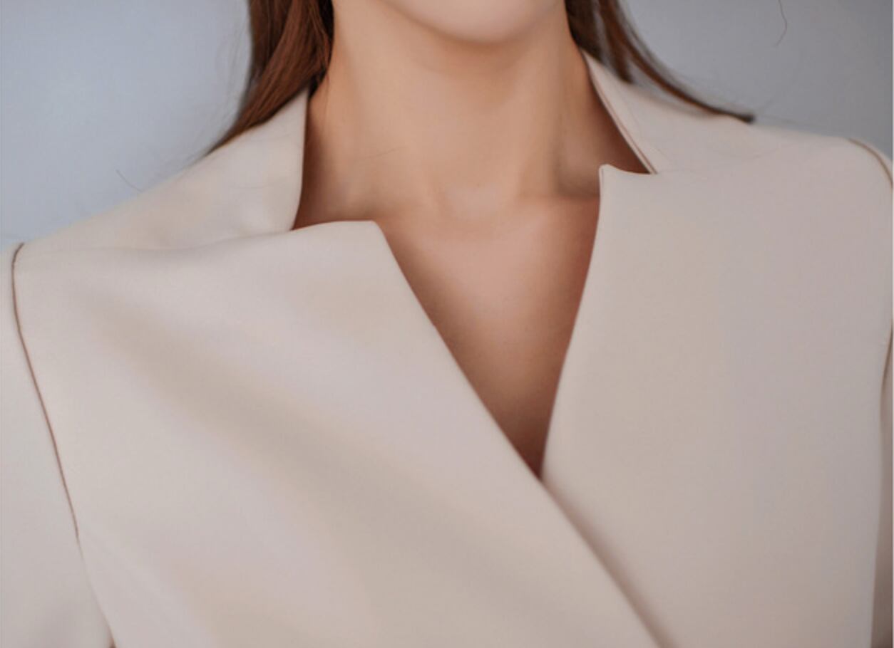 ウエストのラインが綺麗なオフィスやフォーマルなシーンにぴったりな一枚。