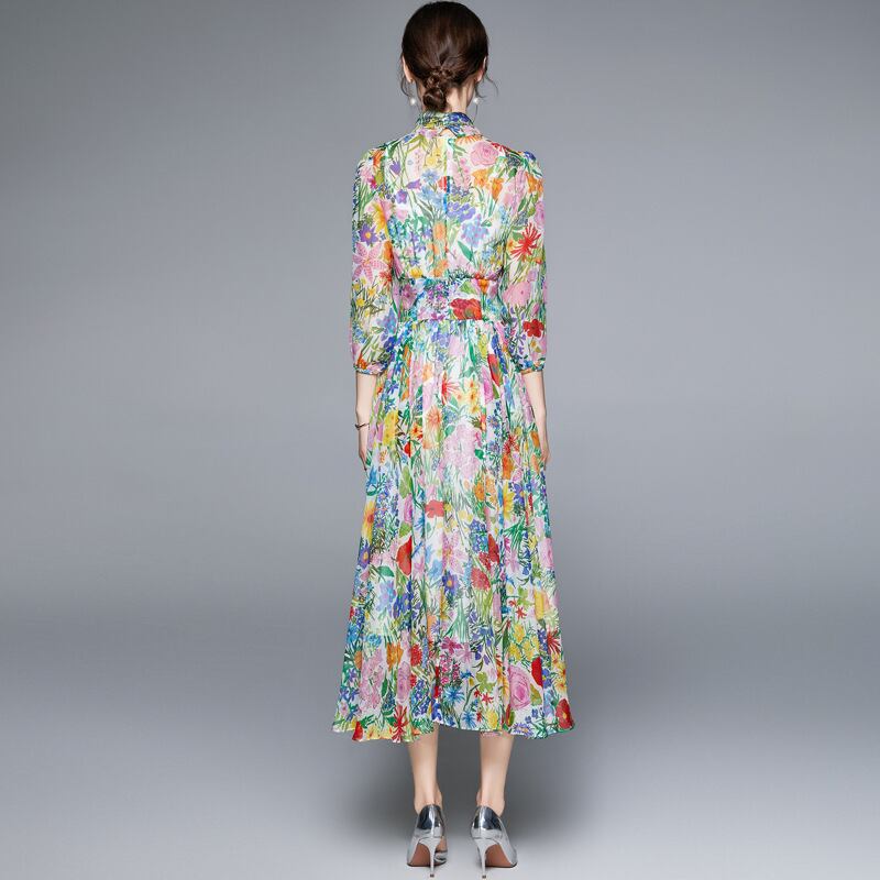 ワンピース 上着 人気 おすすめ おしゃれ お洒落 激安 安い 送料無料 プチプラ 長袖 ロング ハイネック ウエスト 柄 ボリュームスリーブ ロングスカートプリント 花柄 リボン 可愛い かわいい 韓国 きれいめ 高品質 大人 上品 春 スプリング サマー 夏 レディース 女性用 20代 30代 M L XL 2XL 緑 グリーン 黄色 イエロー 桃色 ピンク 大人カラー 春カラー デート フェミニン パーティー エレガント シック