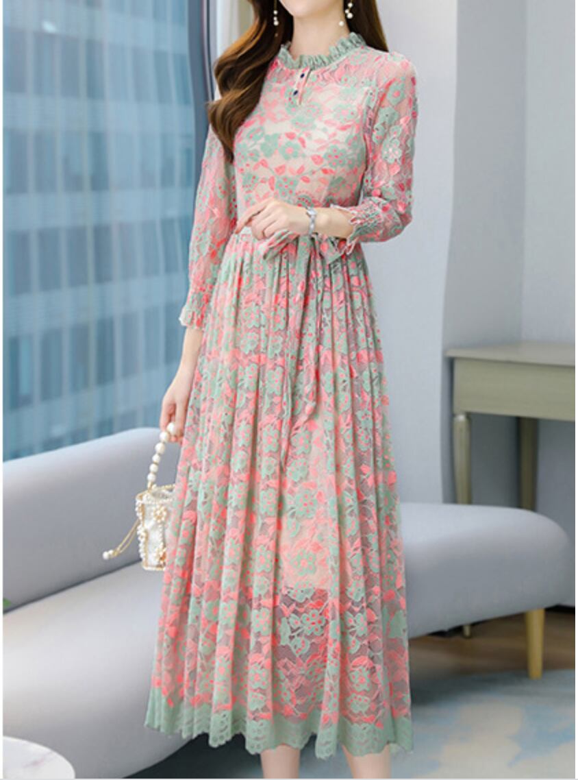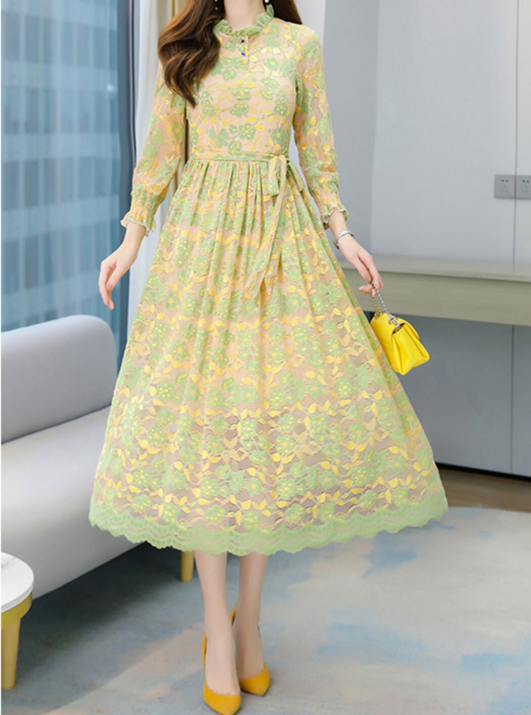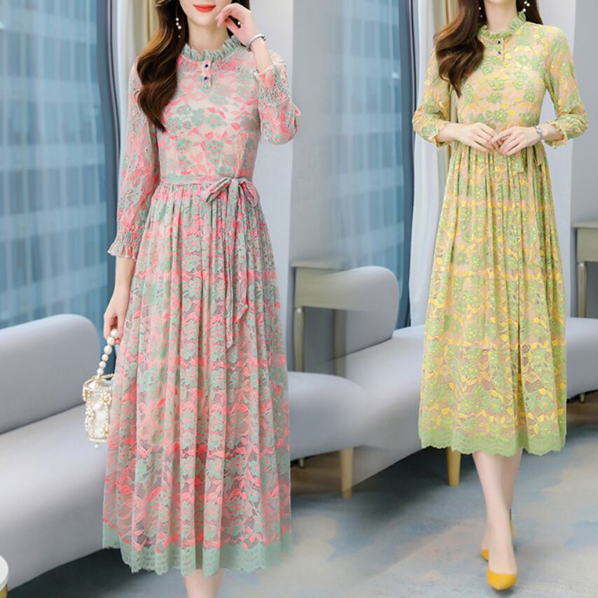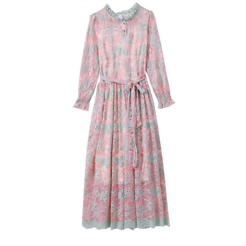 ワンピース 上着 人気 おすすめ おしゃれ お洒落 激安 安い 送料無料 プチプラ 長袖 ロング ラウンドネック 丸首 柄 ウエスト プリント 花柄 リボン シアー レース 可愛い かわいい 韓国 きれいめ 大人 上品 春 スプリング サマー 夏 レディース 女性用 20代 30代 M L XL 2XL 3XL 4XL 青 ブルー 緑 グリーン 黄色 イエロー 桃色 ピンク パステルカラー 春カラー デート フェミニン