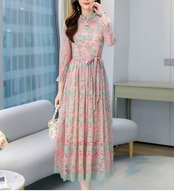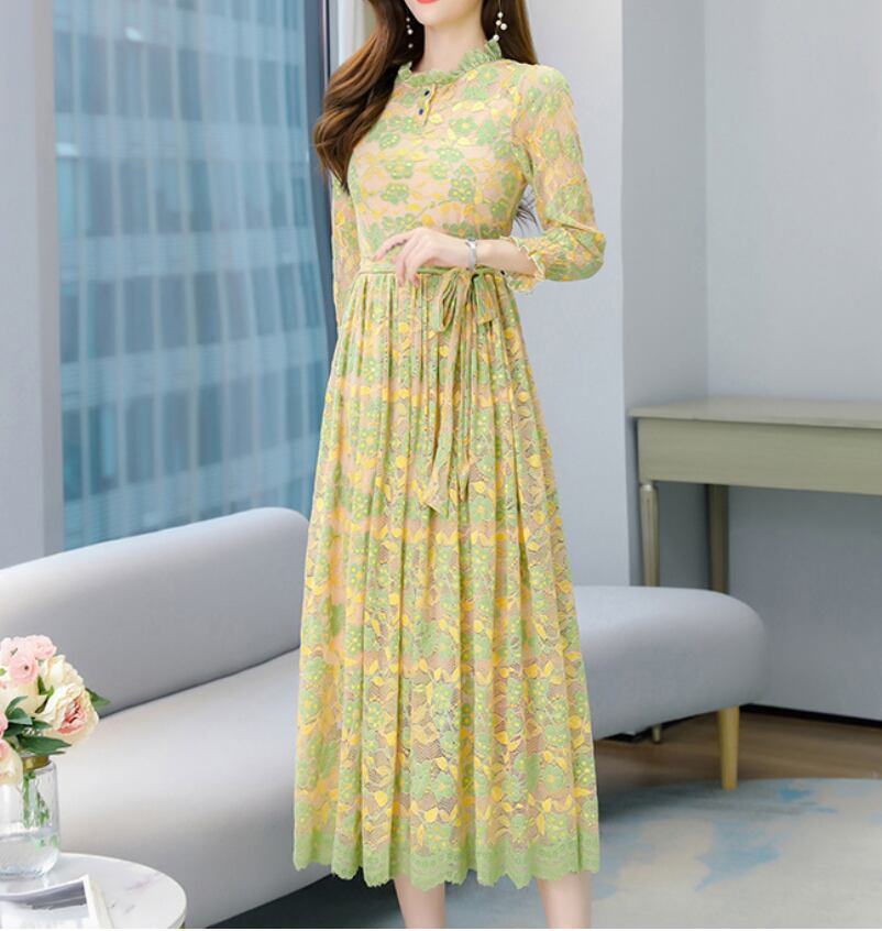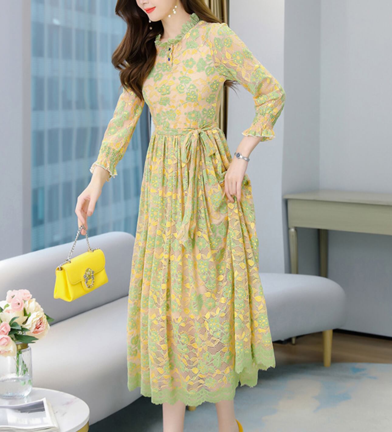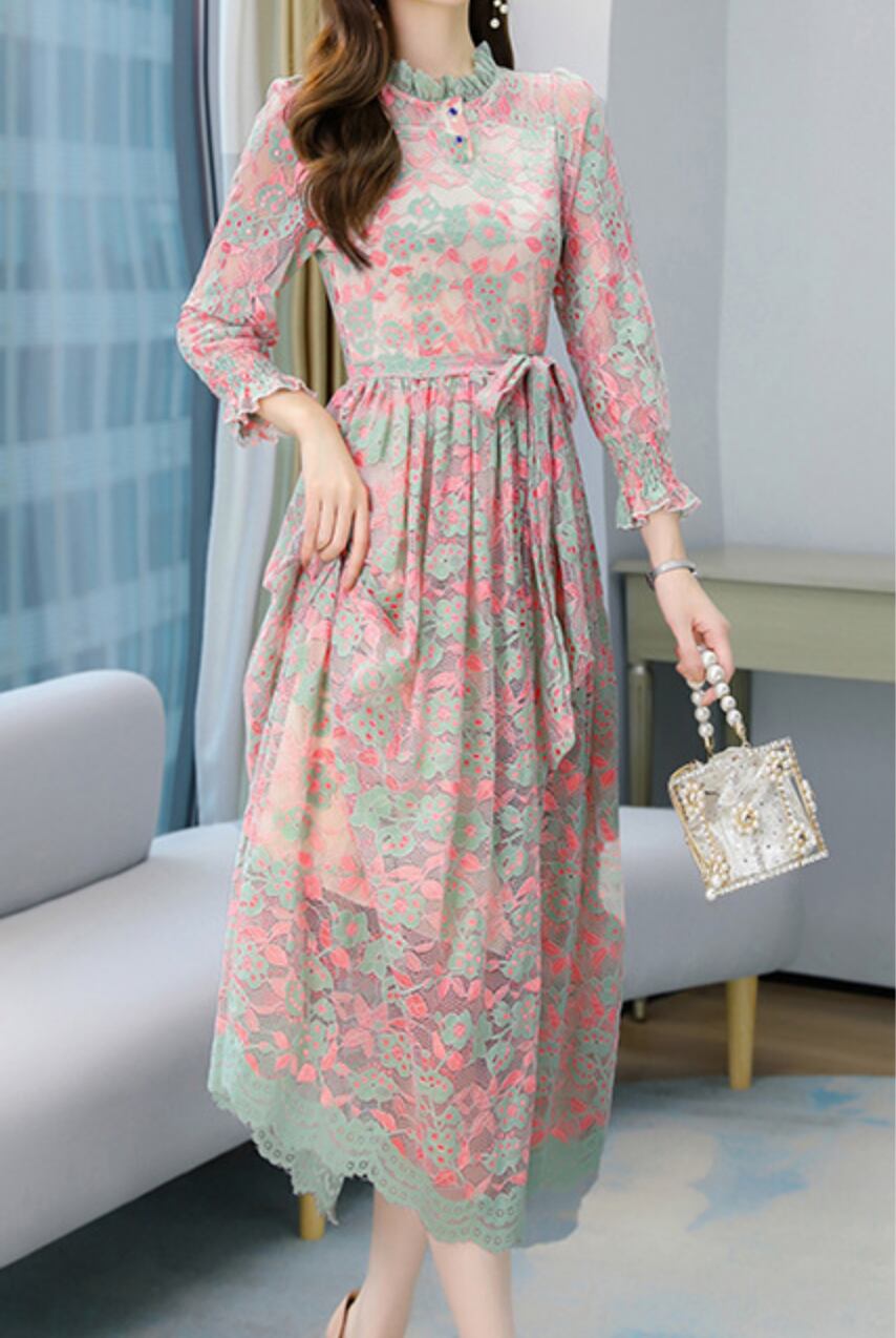 ワンピース 上着 人気 おすすめ おしゃれ お洒落 激安 安い 送料無料 プチプラ 長袖 ロング ラウンドネック 丸首 柄 ウエスト プリント 花柄 リボン シアー レース 可愛い かわいい 韓国 きれいめ 大人 上品 春 スプリング サマー 夏 レディース 女性用 20代 30代 M L XL 2XL 3XL 4XL 青 ブルー 緑 グリーン 黄色 イエロー 桃色 ピンク パステルカラー 春カラー デート フェミニン
