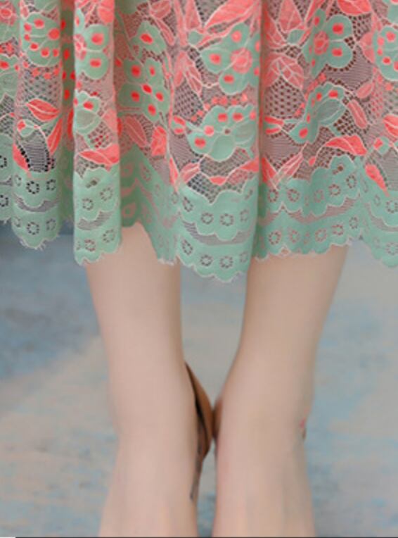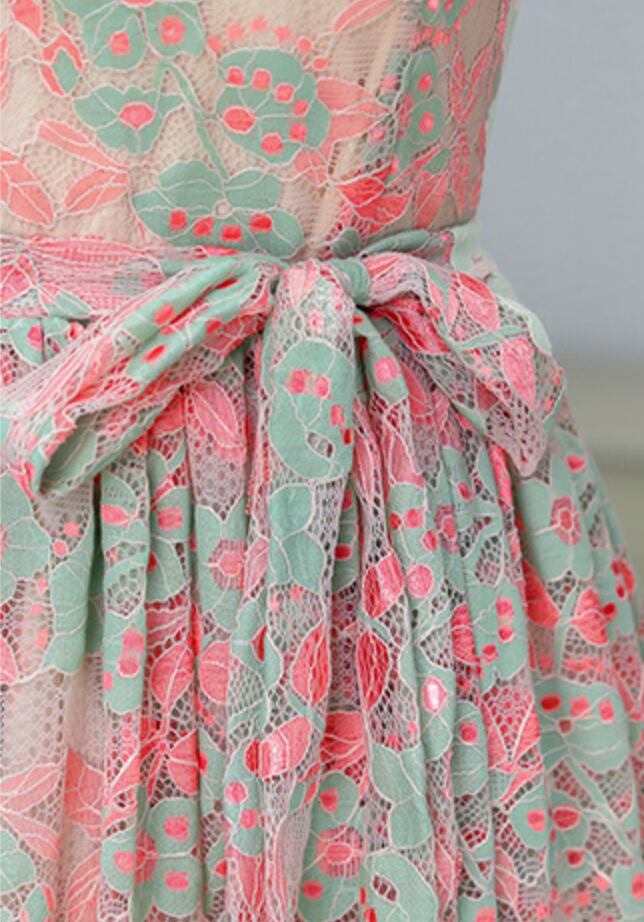 パステルカラーのフラワーレースが可愛いロングワンピース。