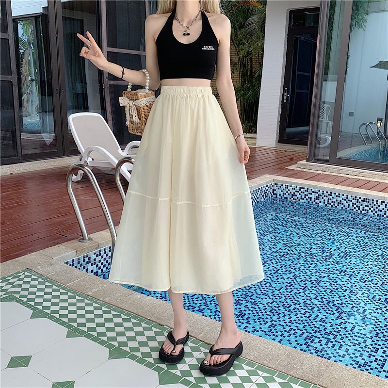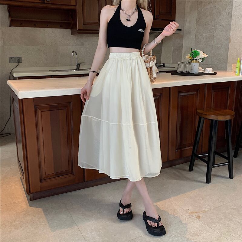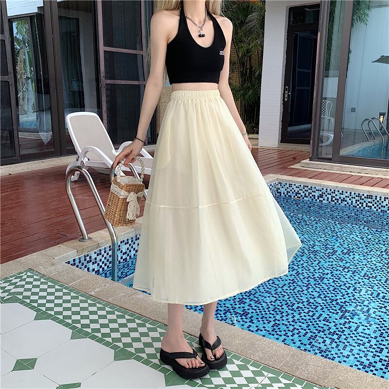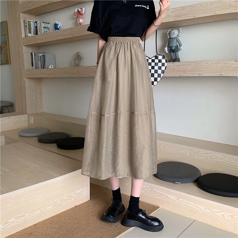 シルクタッチの薄手生地で仕立てた上品なフレアスカートです。