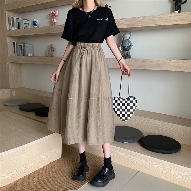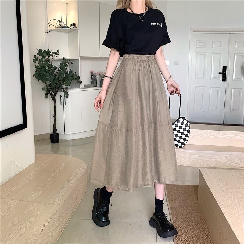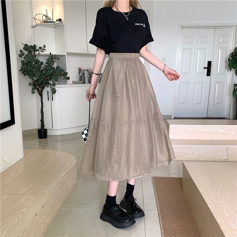 スカート ボトムス ミモレ丈 フレア ティアードスカート ティアード 薄手 ウエストゴム ボリューム モード ハイウエスト ワイド ゆったり ストレッチ 韓国 かわいい 可愛い リラックス きれいめ 楽ちん 春 スプリング 冬 ウィンター ストリート カジュアル レディースこなれ感 着回し クラシカル 上品 女性用 高校生 10代 20代 30代 40代 低身長 ゆったり ゆる ブラウン ブラック アプリコット