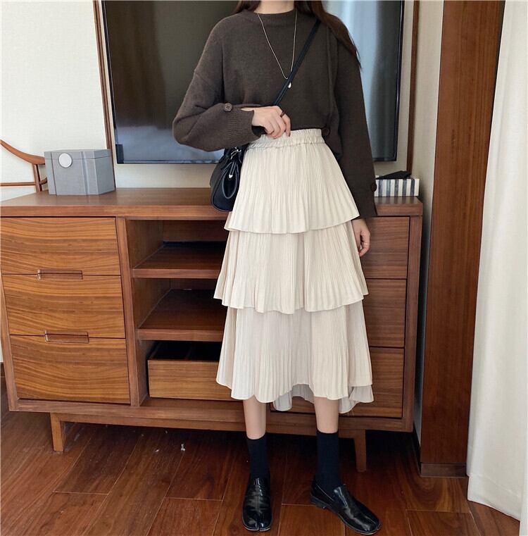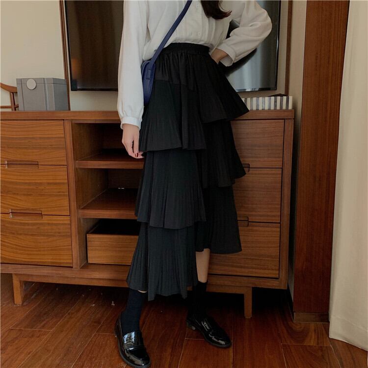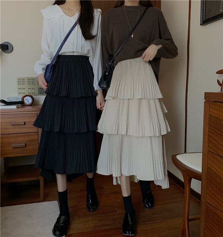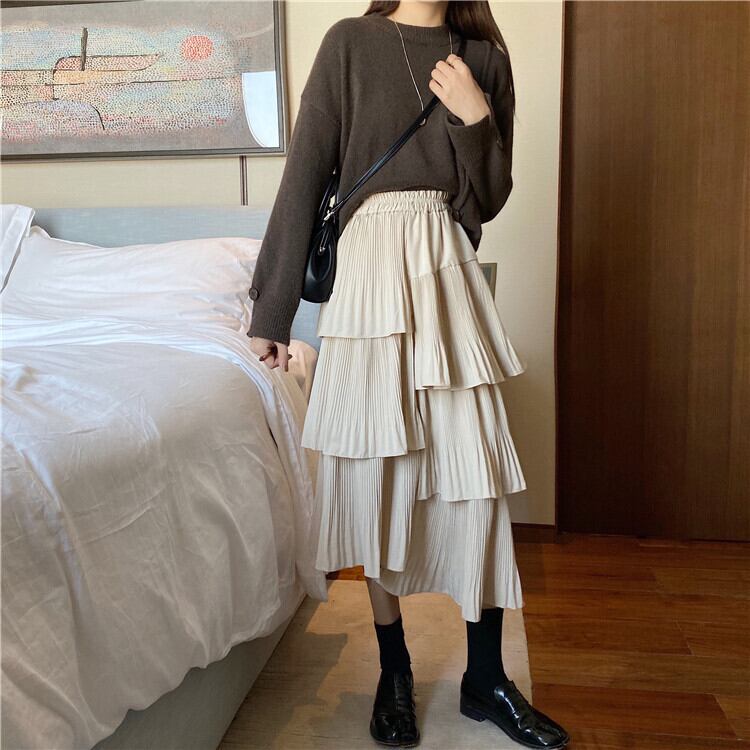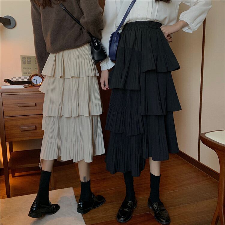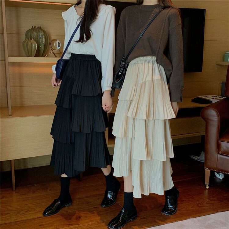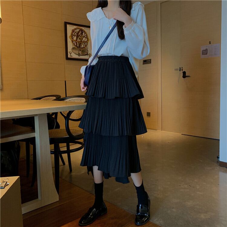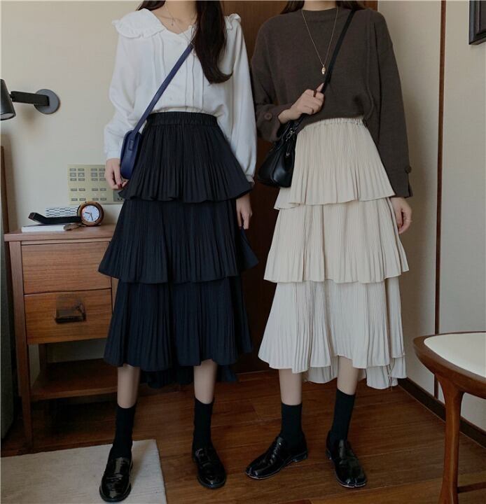 スカート プリーツスカート ボトムス ミモレ丈 フレア フリル アシンメトリー ハイウエスト Aライン ミモレ 丈 ワイド ゆったり アシンメトリー ウエスト ゴム 通気性 動きやすい かわいい 可愛い 涼しい リラックス きれいめ 楽ちん 夏 サマー カジュアル レディース 女性用 高校生 30代 40代 ゆったり ゆる アプリコット 黒 ブラック