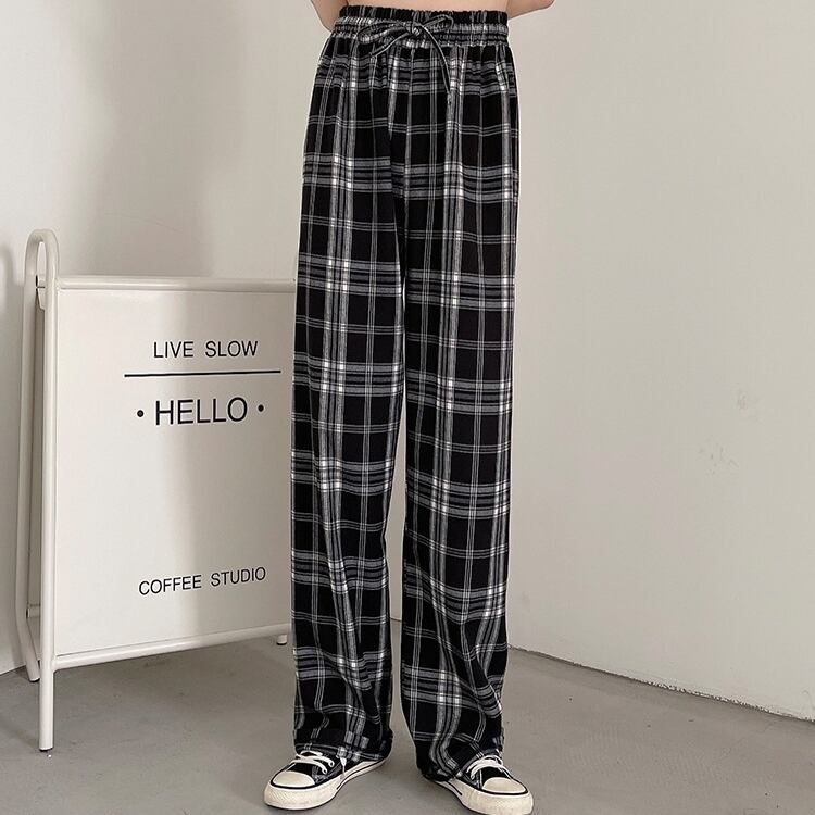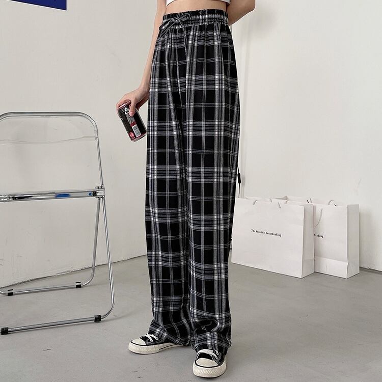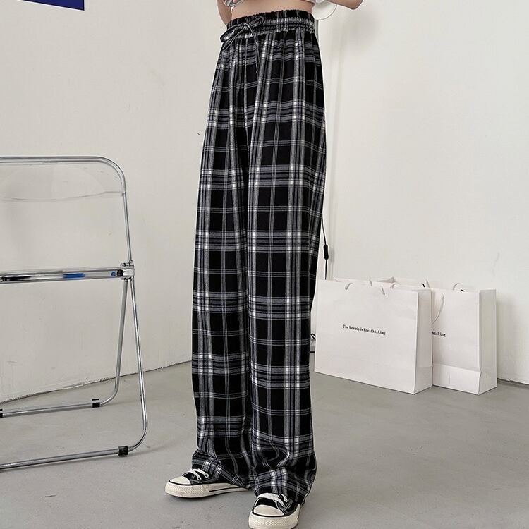 ラフパンツ ボトムス 長ズボン スラックス チェック バイカラー レトロ フレアパンツ スリット ウエストゴム セミフレア パンツ ハイウエスト ストレッチ ストレッチ 美脚 動きやすい 韓国 かわいい 可愛い リラックス きれいめ 楽ちん 春 スプリング 夏 サマー 冬 ウィンター ストリート カジュアル レディース カジュアル ストリート レトロ 美脚 女性用 高校生 10代 20代 30代 黒 ブラック ホワイト
