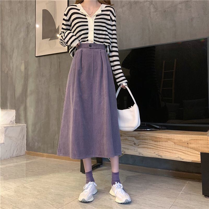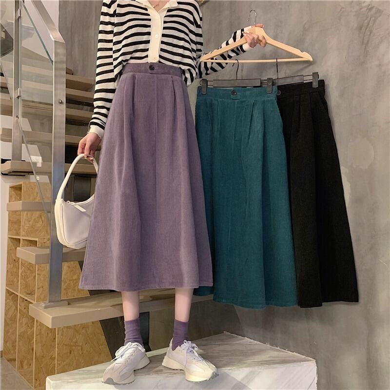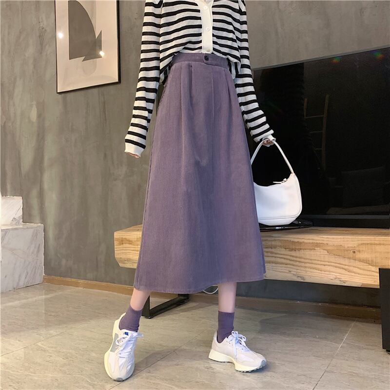 ボトムス ボトム おすすめ おしゃれ お洒落 激安 安い 送料無料 プチプラ スカート ロング スカート ハイ ウエスト Aライン ミモレ 丈 コーデュロイ ポリエステル 美脚 動きやすい 韓国 ヒップアップ 流行り かわいい 可愛い 春 スプリング 夏 サマー ストリート アウトドア カジュアル レディース 女性用 30代 20代 S M L XL 大きめ 黒 ブラック 緑 グリーン 紫 パープル 大人カラー 秋カラー