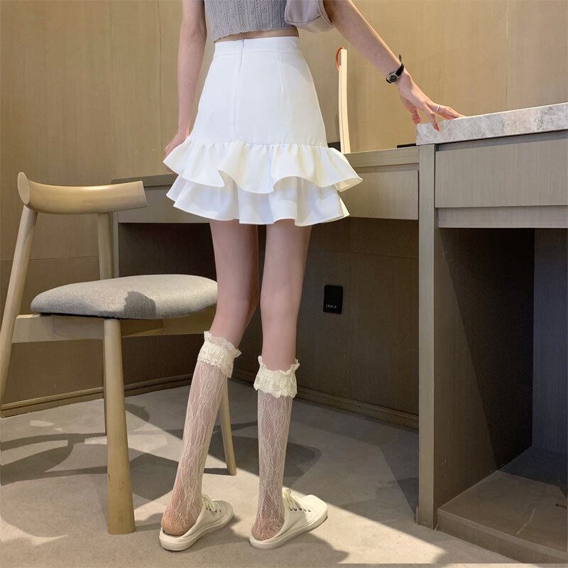 大ぶりのフリルが足をすっきりと見せてハイウエストが腰を高く見せます。