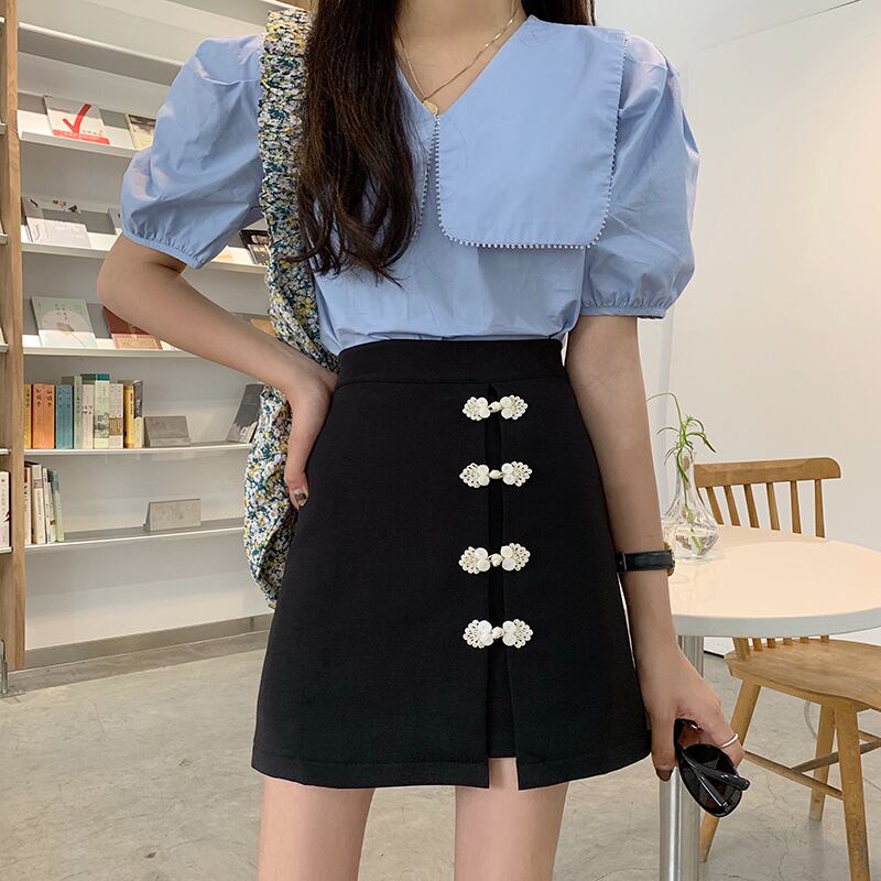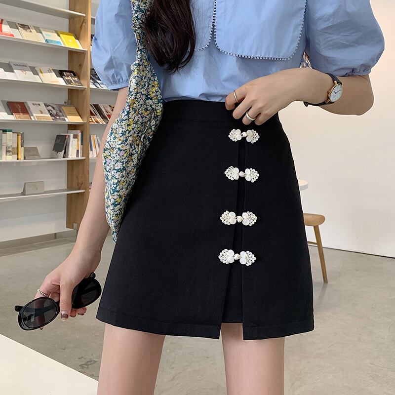 繊細で上品なボタン装飾が魅力のミニスカートです。