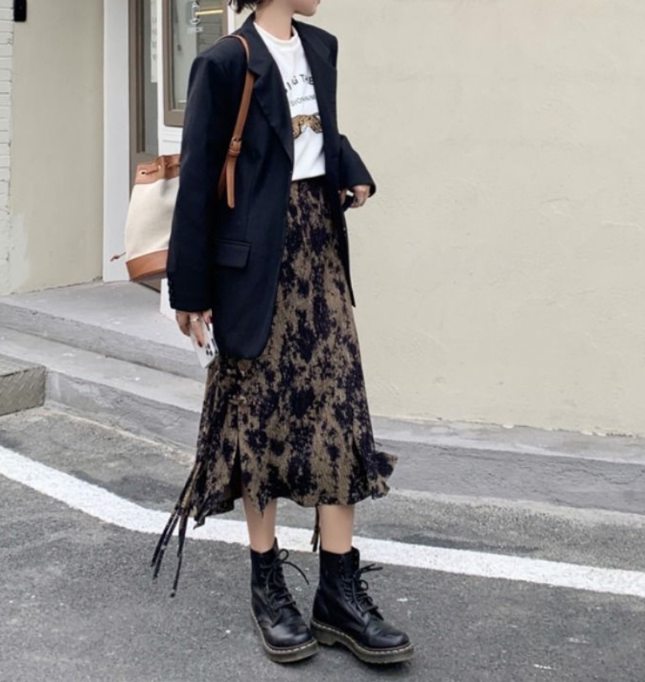 タイダイ柄のコーデュロイ生地ロングスカート。