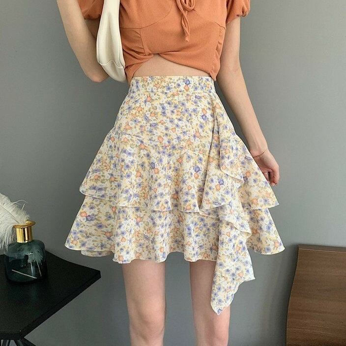 スカート ボトムス ミニスカート 花柄 ティアード アシンメトリー ニュアンスカラー フラワー フローラル ギャザー ハイウエスト 切り替え 大人女子 カジュアル セクシー スポーティー お洒落 おしゃれ オシャレ 可愛い かわいい レディース 送料無料 春 夏 スプリング サマー 海 ビーチ リゾート プール フィット スリム 細身 背中あき 肌見せ 露出 20代 デート ランチ 買い物 ショッピング 観光 旅行 ハイウエスト 脚長効果 ウエストマーク ウエストブルー イエロー