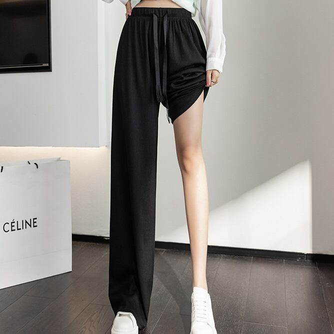 ラフパンツ ボトムス 長ズボン スラックス ワントーン バイカラー ドローストリング レトロ フレアパンツ スリット ウエストゴム セミフレア パンツ ハイウエスト ストレッチ ストレッチ 美脚 動きやすい 韓国 かわいい 可愛い リラックス きれいめ 楽ちん 春 スプリング 夏 サマー 冬 ウィンター ストリート カジュアル レディース カジュアル ストリート レトロ 美脚 女性用 高校生 10代 20代 30代 黒 ブラック ホワイト ブルー ピンク