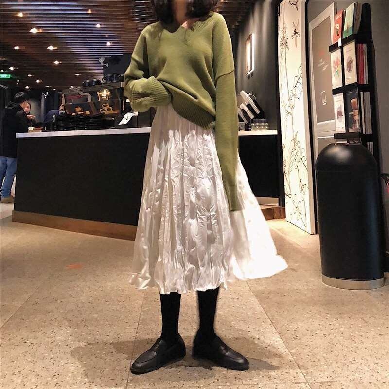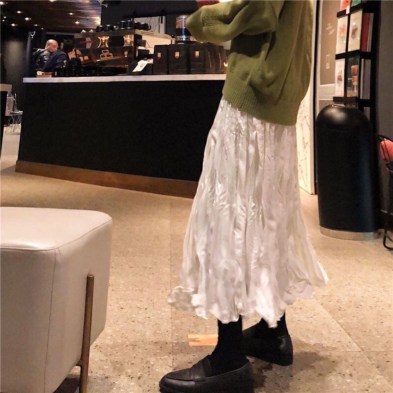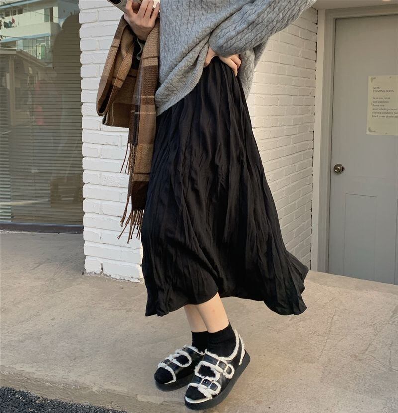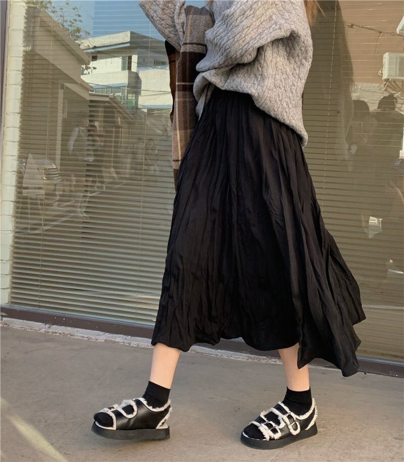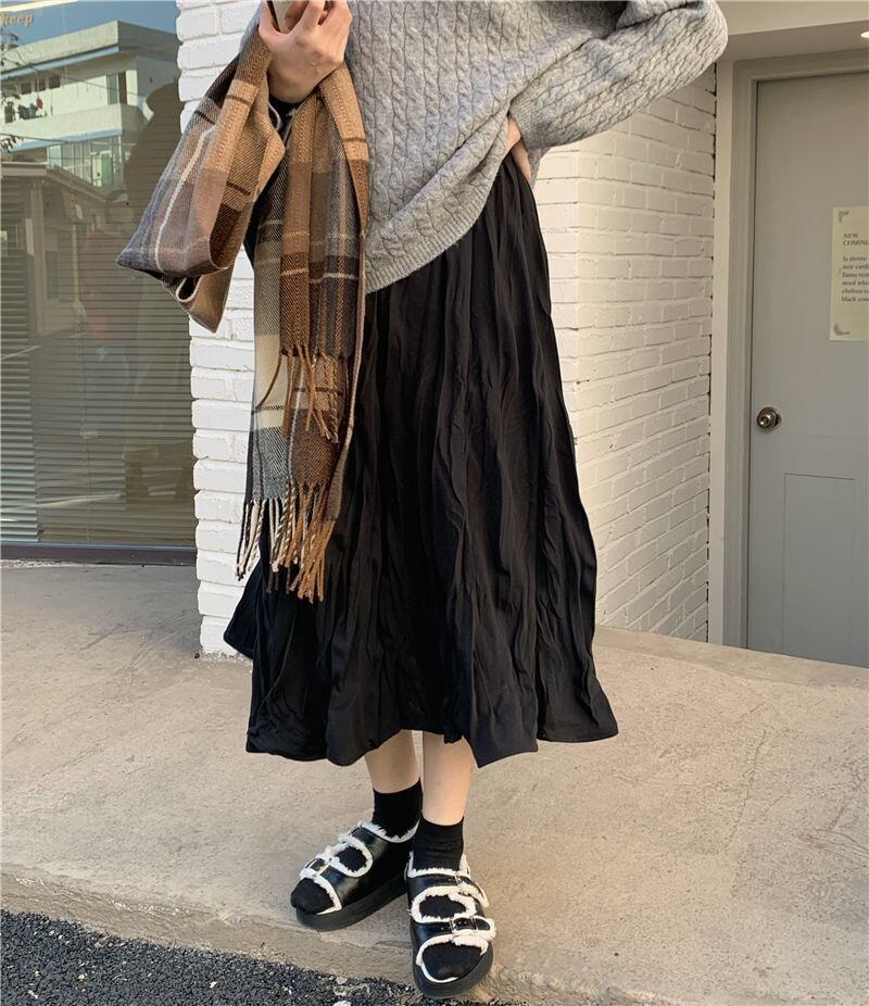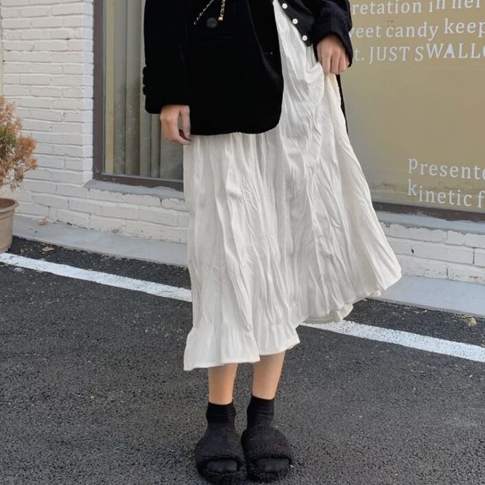 スカート ボトムス ミモレ丈 フレア プリーツ 無地 しわ加工 モノトーン クリンクルプリーツ ニュアンスカラー バイカラー ウエストゴム ボリューム モード ハイウエスト ワイド ゆったり ストレッチ 韓国 かわいい 可愛い リラックス きれいめ 楽ちん 春 スプリング 冬 ウィンター ストリート カジュアル レディースこなれ感 着回し クラシカル 上品 女性用 高校生 10代 20代 30代 40代 低身長 ゆったり ゆる ブラック ホワイト