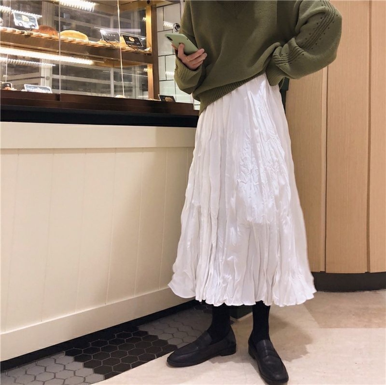 こなれたくしゅっとしたクリンクルプリーツのスカートです。