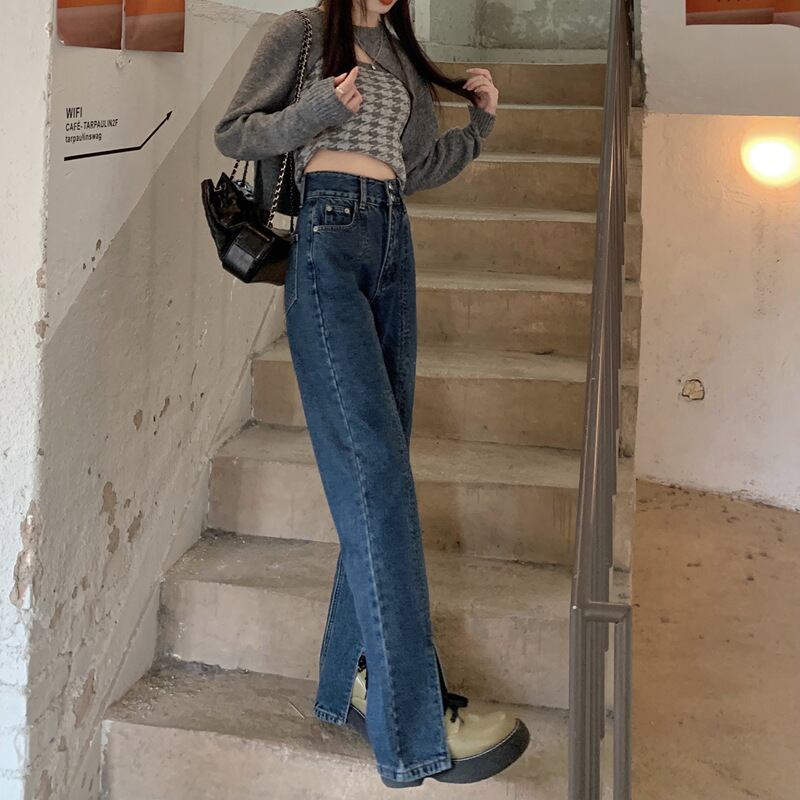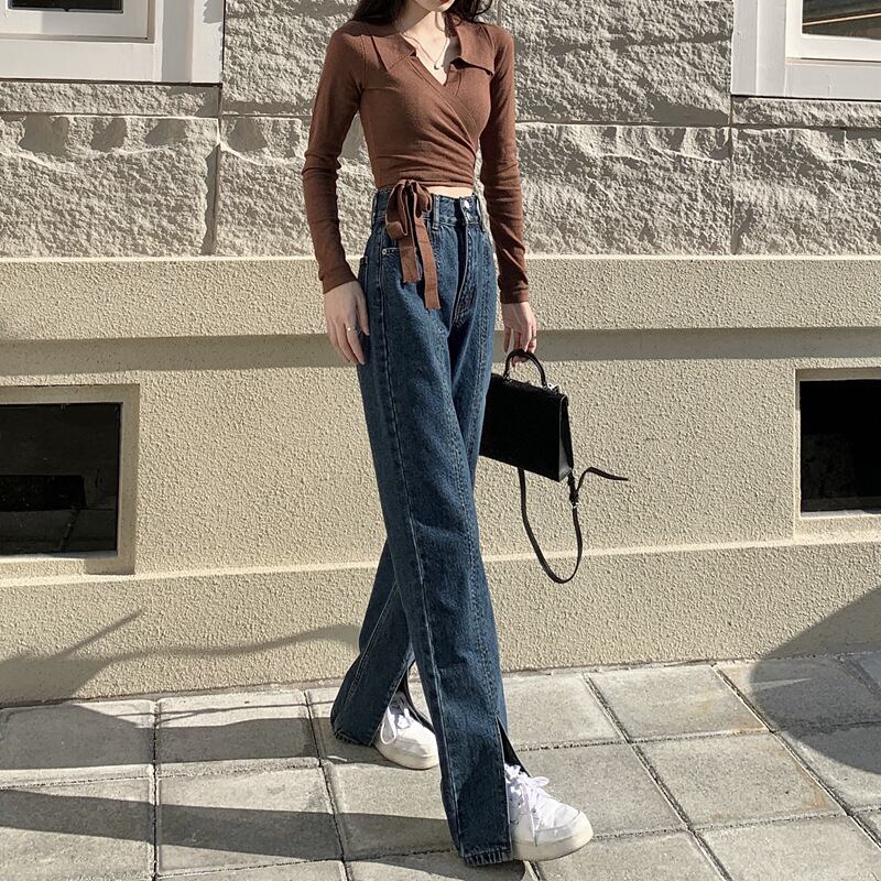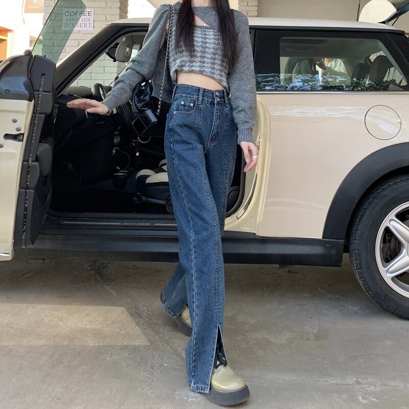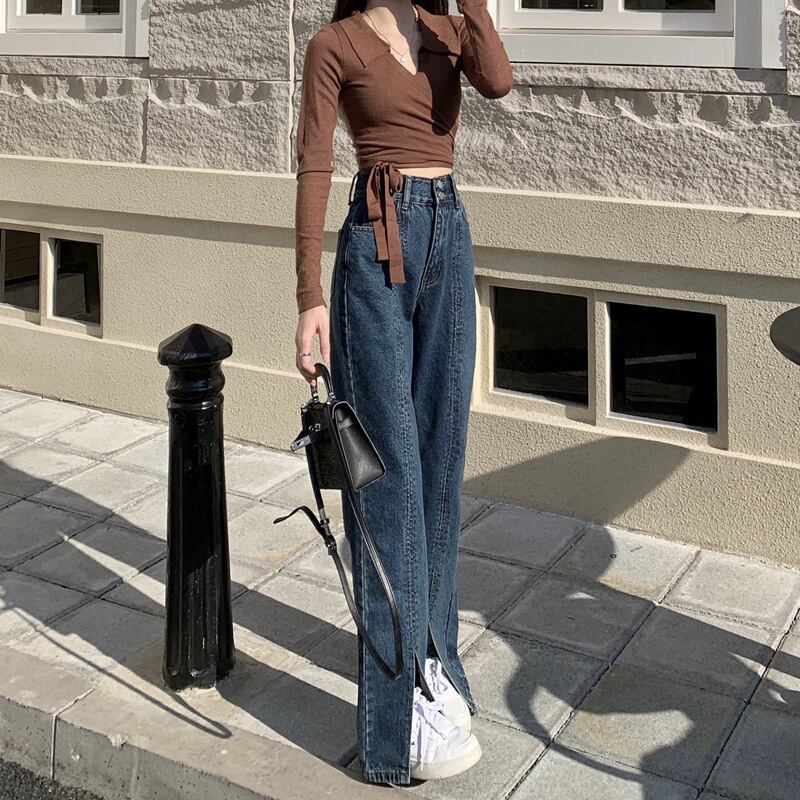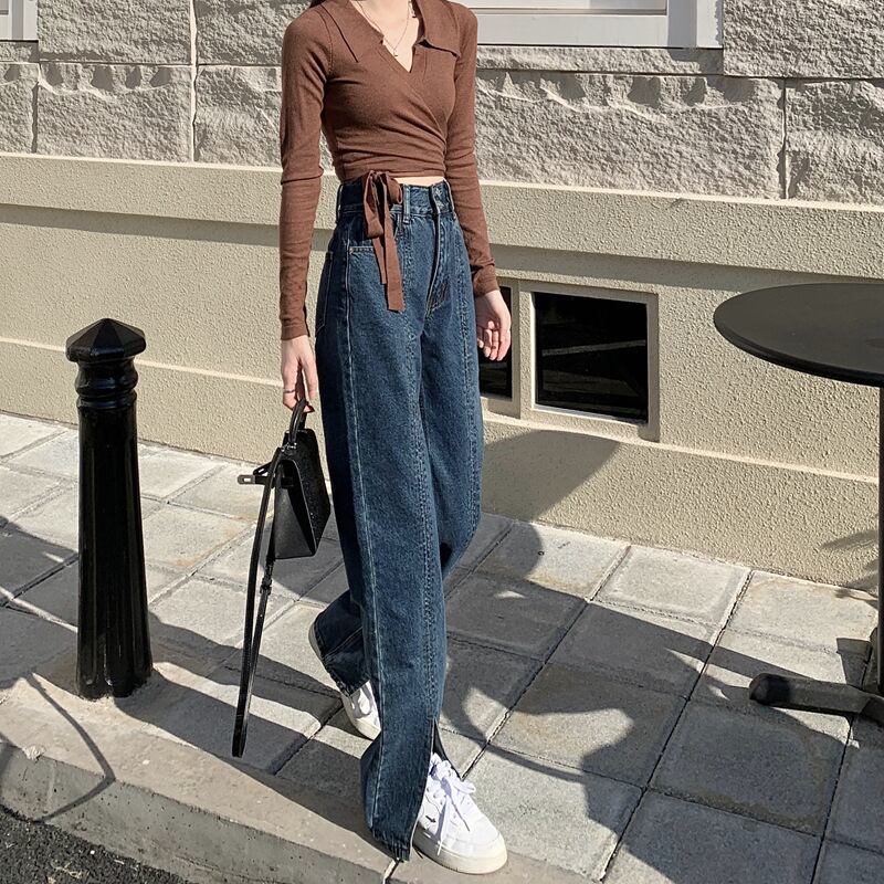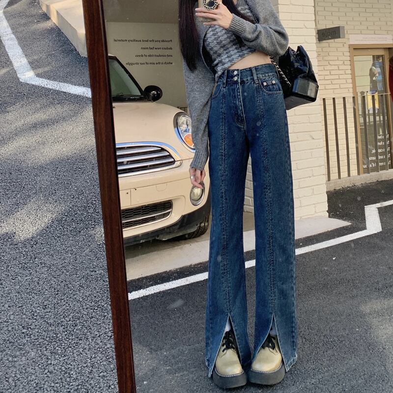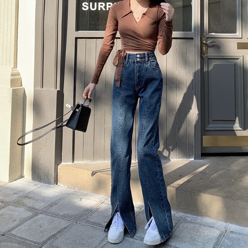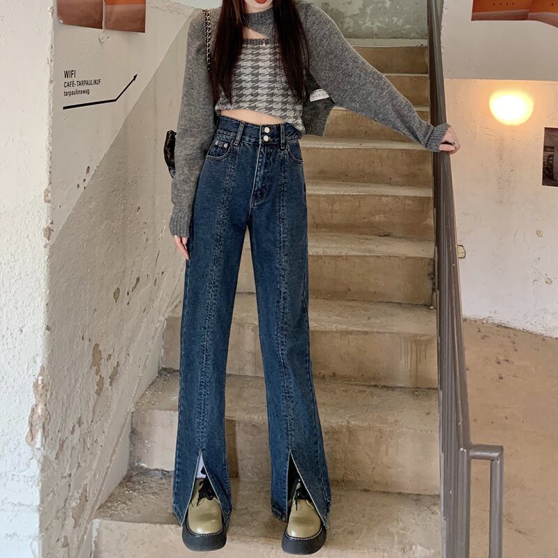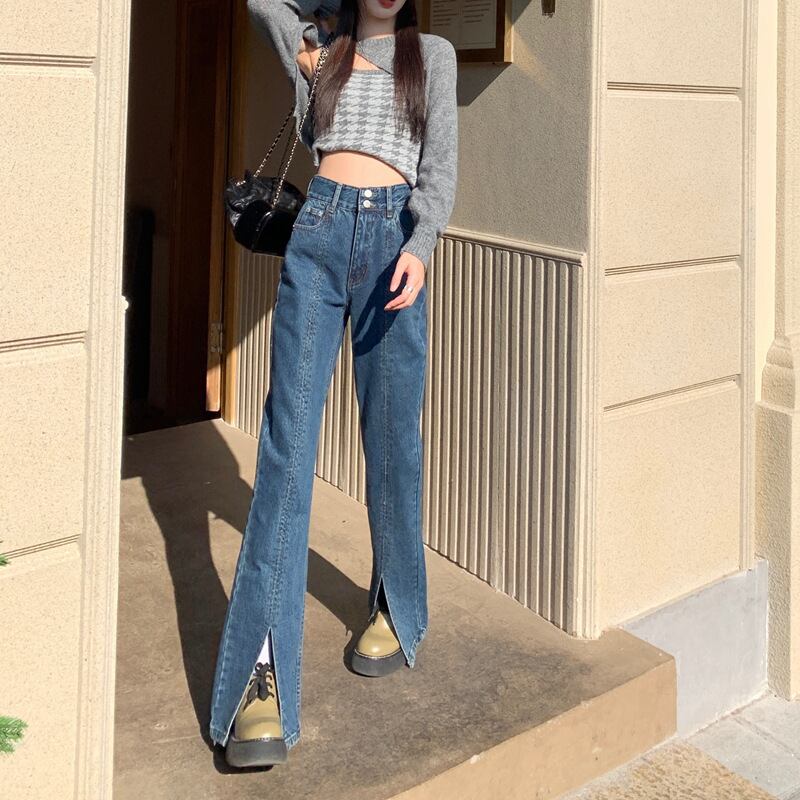 ダメージ ジーンズ 長ズボン フレア ジーパン スリット セミフレア パンツ ハイウエスト ストレッチ ロング ワイドパンツ スリット ストレッチ 美脚 動きやすい 韓国 かわいい 可愛い リラックス きれいめ 楽ちん 春 スプリング 夏 サマー 冬 ウィンター ストリート カジュアル レディース カジュアル ストリート レトロ 美脚 女性用 高校生 30代 黒 ブラック 紺 ネイビー 水色 スカイブルー
