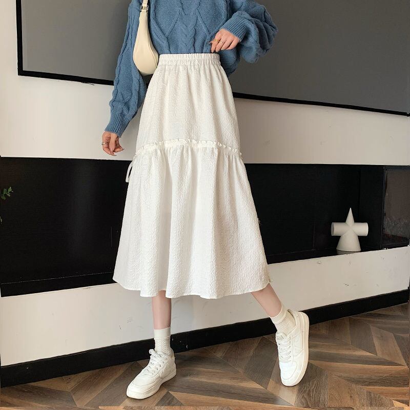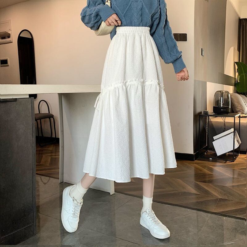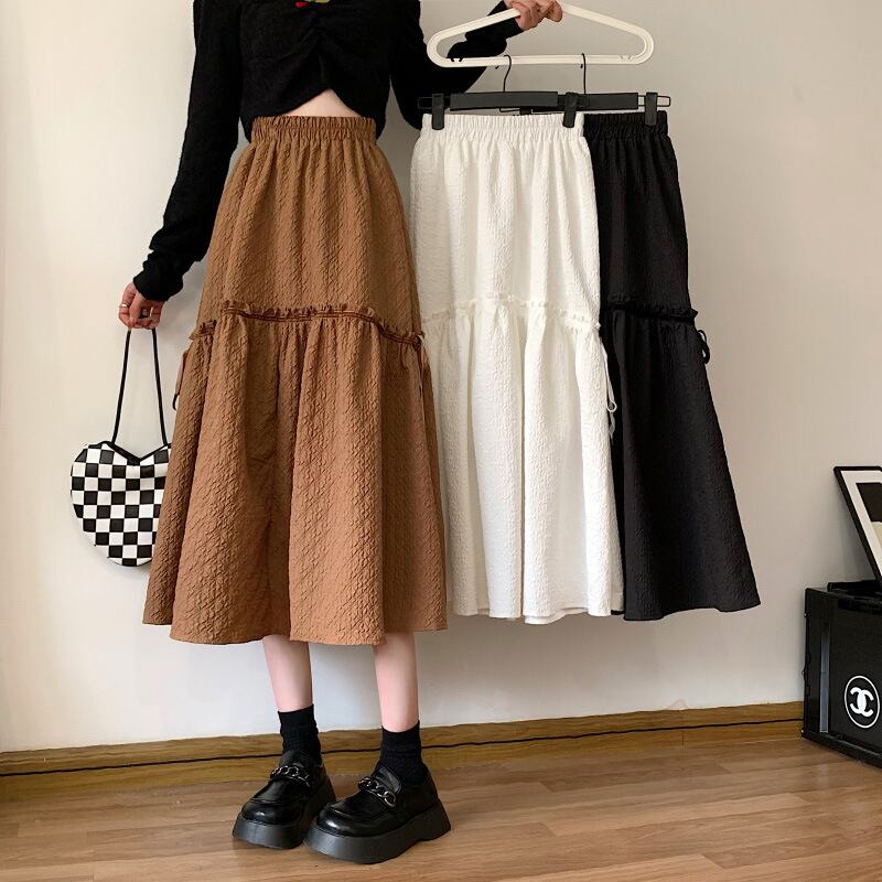ボトムス ボトム おすすめ おしゃれ お洒落 激安 安い 送料無料 プチプラ スカート ロング スカート フレア スカート ボリューム スカート ハイ ウエスト Aライン ミモレ 丈 ワイド ゆったり ポリエステル ウエスト ゴム 動きやすい 韓国 流行り かわいい 可愛い リラックス きれいめ 楽ちん 春 スプリング 夏 サマー オフィス カジュアル レディース 女性用 30代 20代 S M L XL 2XL 白 ホワイト 黒 ブラック カーキ 大人カラー 秋カラー