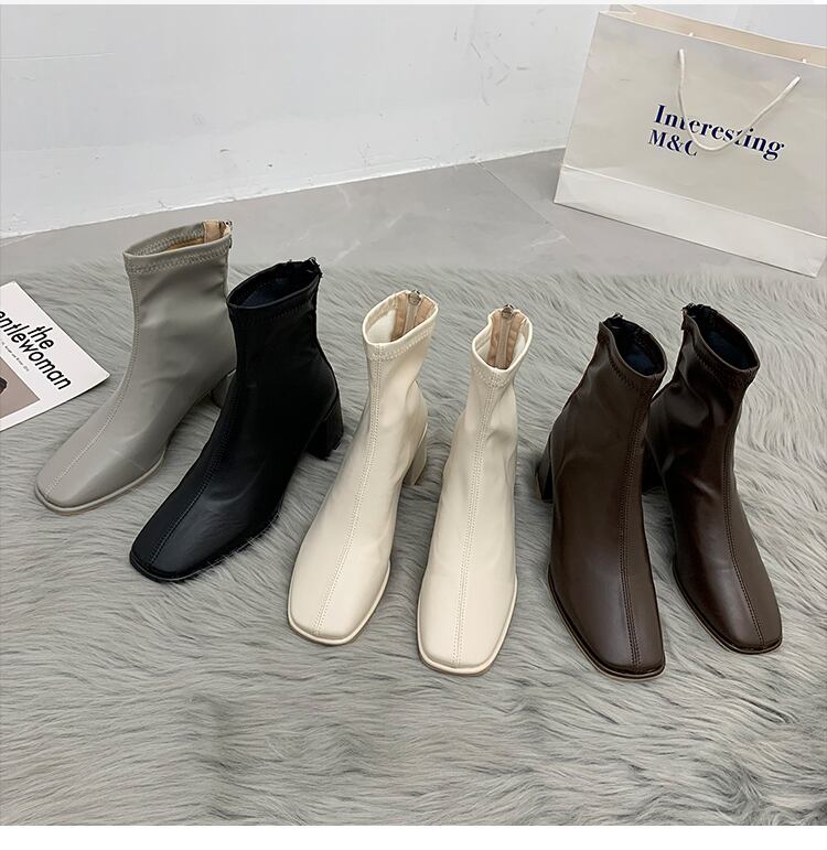 おしゃれ 人気 安い 激安 送料無料 レディース ショートブーツ 6cm チャンキーヒール 太ヒール バックジップ 歩きやすい きれいめ 疲れない かっこいい カジュアル 大人 可愛い 流行り 上品 きれいめ シンプル クラシック エレガント 個性的 モード系 ストリート ガーリー モード系 主役級 とろみ感 女子会 デート お出かけ 大学生 20代 30代 ママ OL 黒 ブラック オフホワイト 茶色 ブラウン グレー 22.5cm 23.0cm 23.5cm 24.0cm 24.5cm 25.0cm