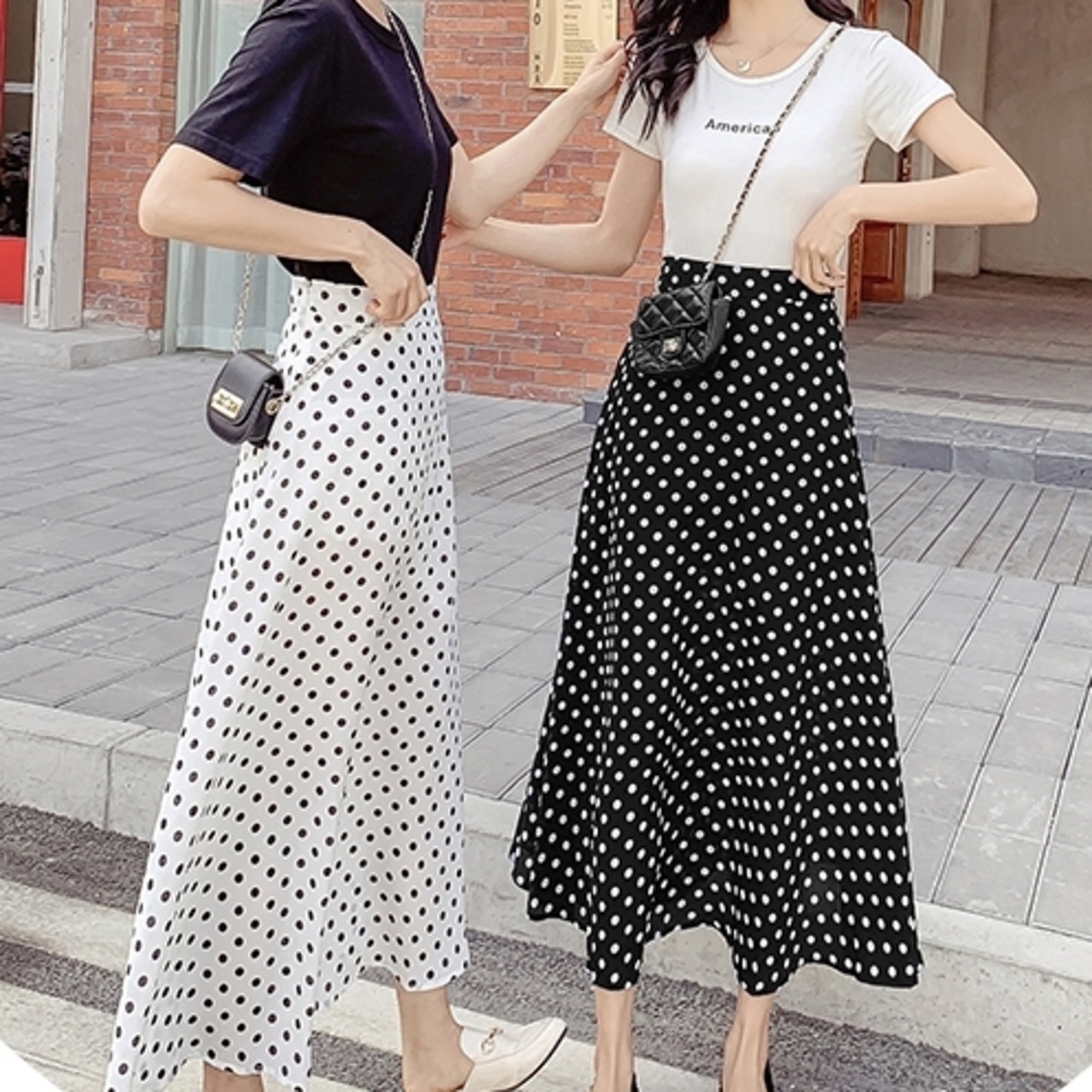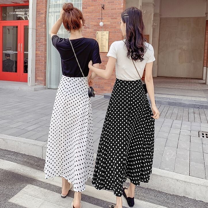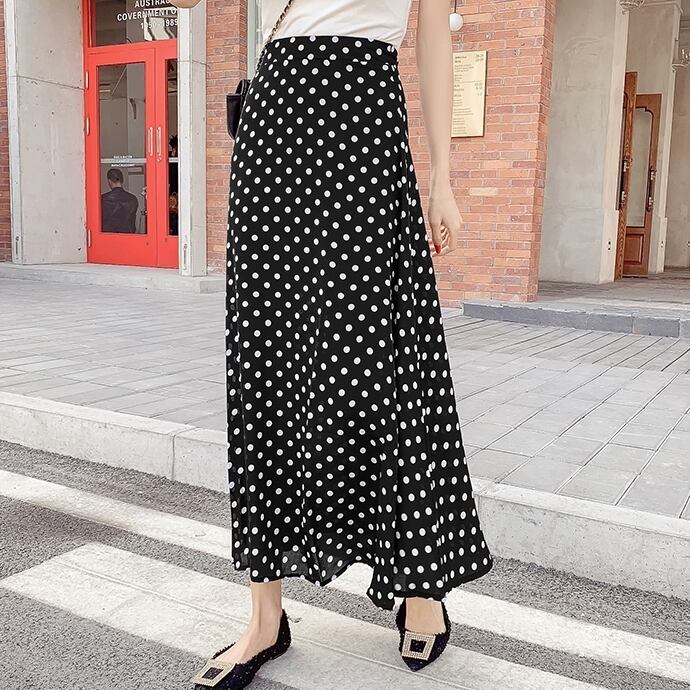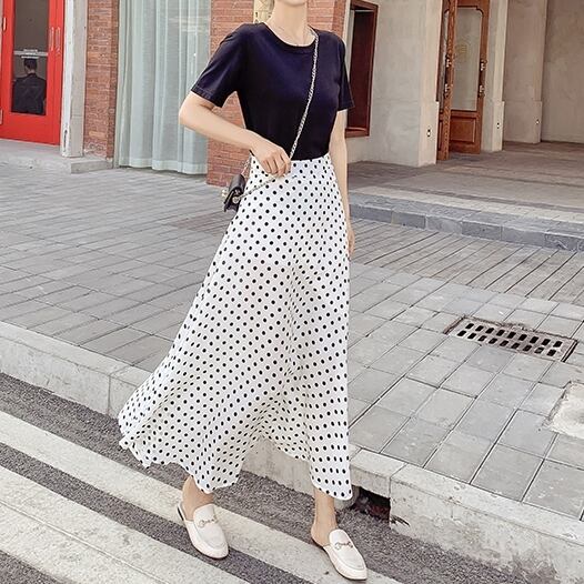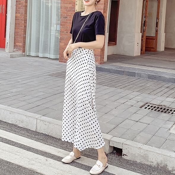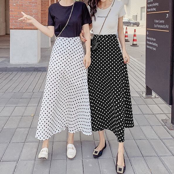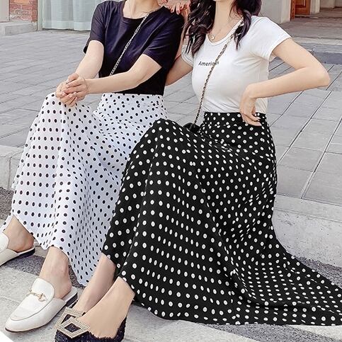 スカート ボトムス ミモレ丈 フレア ロング丈 スカート ツータック ドット 水玉 モノトーン ウエストゴム ボリューム モード ハイウエスト ワイド ゆったり ストレッチ 韓国 かわいい 可愛い リラックス きれいめ 楽ちん 春 スプリング 冬 ウィンター ストリート カジュアル レディースこなれ感 着回し クラシカル 上品 女性用 高校生 30代 40代 低身長 ゆったり ゆる 黒 ホワイト ブラック グリーン ブラウン