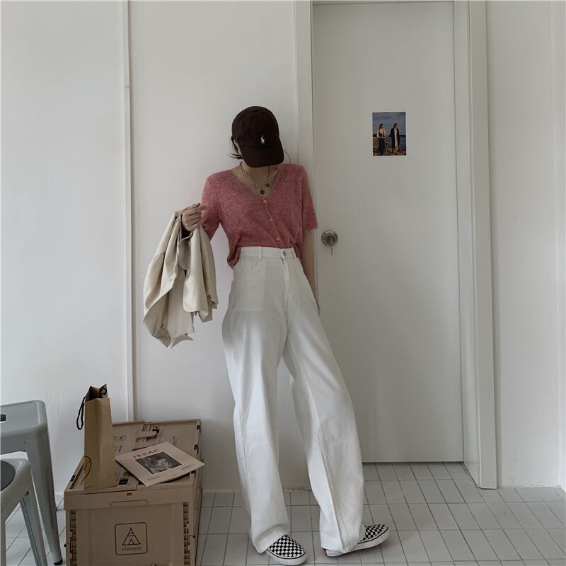 パンツ ボトム デニム パンツ Gパン ワイド パンツ ハイウエスト カラーデニム モノトーン ゆったり コットン ストレート 綿 美脚 動きやすい 韓国 ヒップアップ 流行り かわいい 可愛い きれいめ 楽ちん 春 スプリング 夏 サマー ストリート アウトドア カジュアル レディース 女性用 30代 20代 S M L XL オフホワイト ブラック