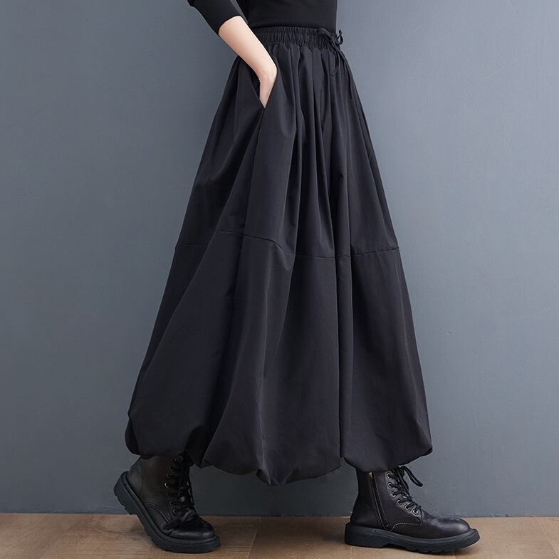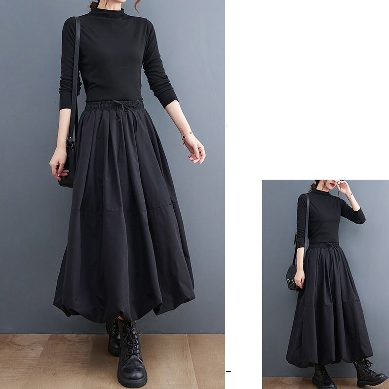 スカート ボトムス ロング丈 フレア 無地 しわ加工 コクーン バルーン キャロット モノトーン ニュアンスカラー ウエストゴム ボリューム モード ハイウエスト ワイド ゆったり ストレッチ 韓国 かわいい 可愛い リラックス きれいめ 楽ちん 春 スプリング 冬 ウィンター ストリート カジュアル レディースこなれ感 着回し クラシカル 上品 女性用 高校生 10代 20代 30代 40代 低身長 ゆったり ゆる ブラック