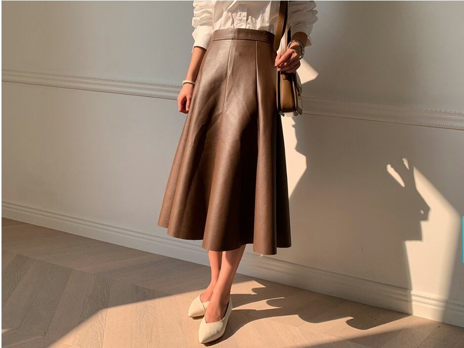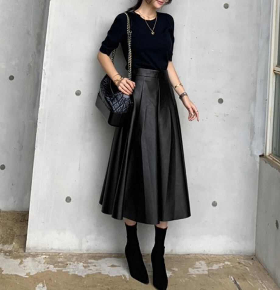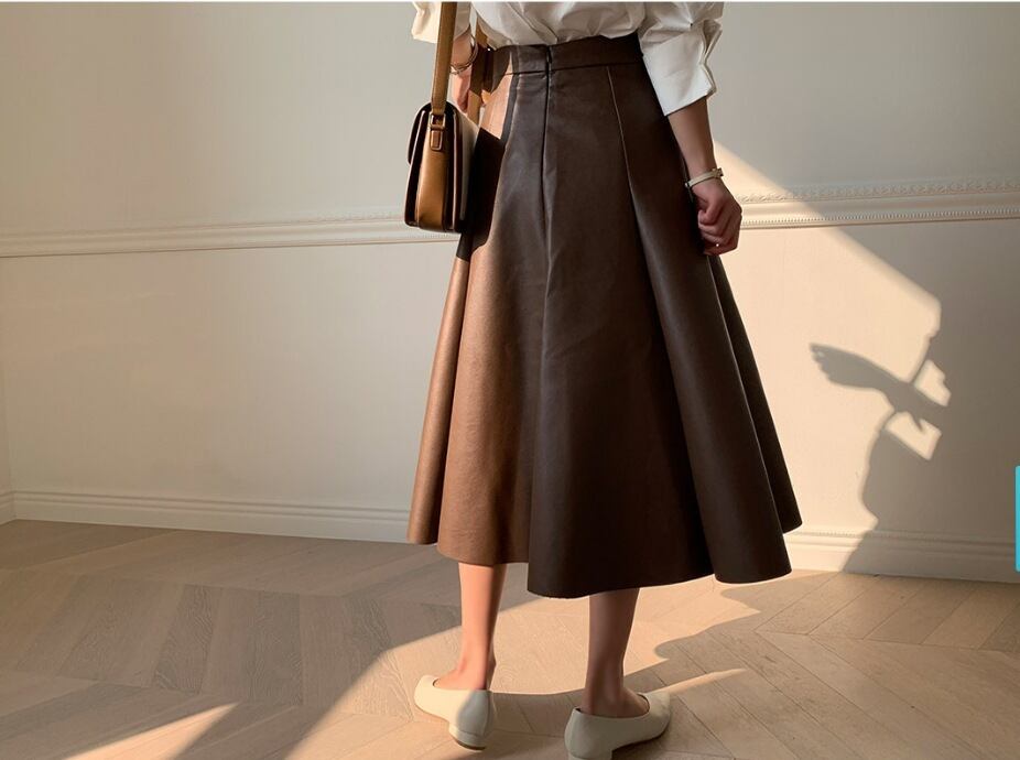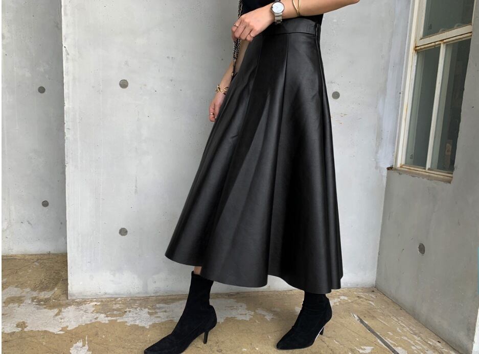 ボトムス ボトム おすすめ おしゃれ お洒落 激安 安い 送料無料 プチプラ スカート ロング スカート フレア スカート ハイ ウエスト Aライン ミモレ 丈 マキシ丈 アンクル丈 フェイクレザー 動きやすい 韓国 ヒップアップ 流行り かわいい 可愛い きれいめ 楽ちん 冬 ウィンター ストリート オフィス カジュアル 秋 レディース 女性用 30代 20代 S M L 黒 ブラック 茶色 ブラウン ベージュ オフホワイト 大人カラー 秋カラー
