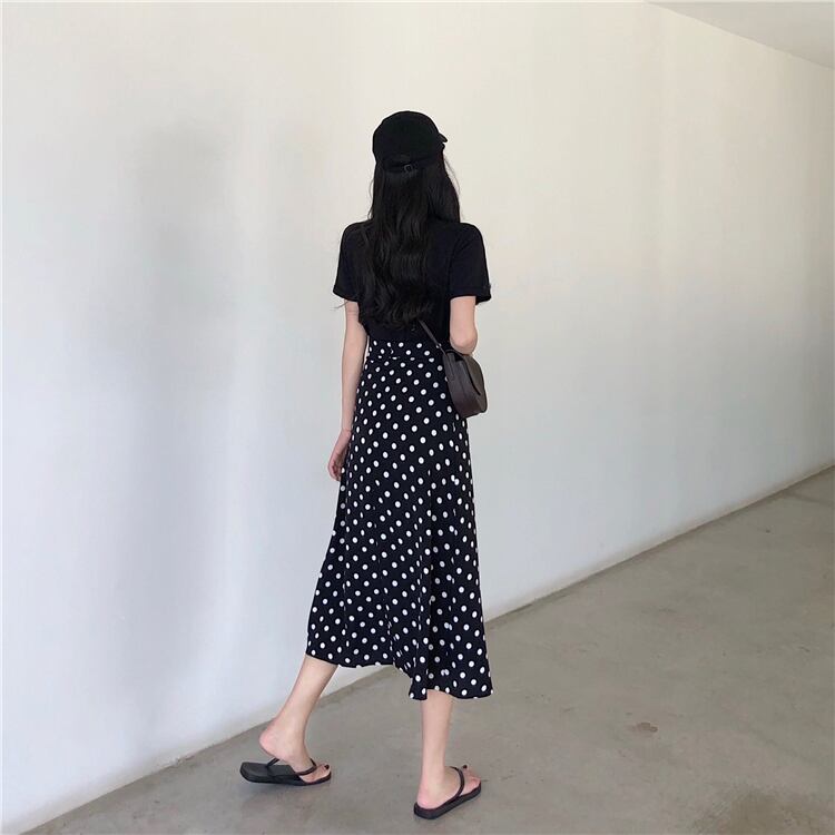ボトムス ボトム おすすめ おしゃれ お洒落 激安 安い 送料無料 プチプラ スカート ロング スカート フレア スカート ハイ ウエスト Aライン ミモレ 丈 アンクル丈 ドット ウエスト ゴム 動きやすい 韓国 ヒップアップ 流行り かわいい 可愛い きれいめ 楽ちん 春 スプリング 夏 サマー オフィス カジュアル レディース 女性用 30代 20代 M L XL 2XL 3XL 4XL 大きいサイズ 黒 ブラック 赤 レッド 大人カラー
