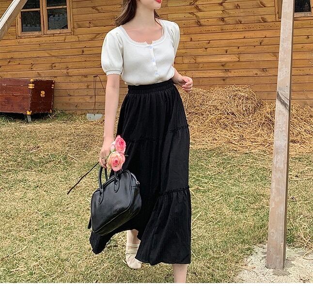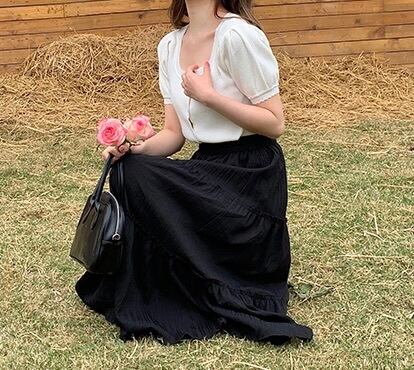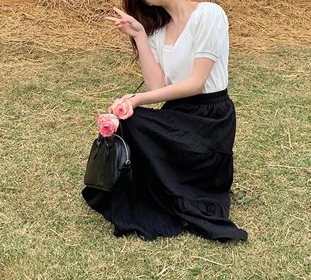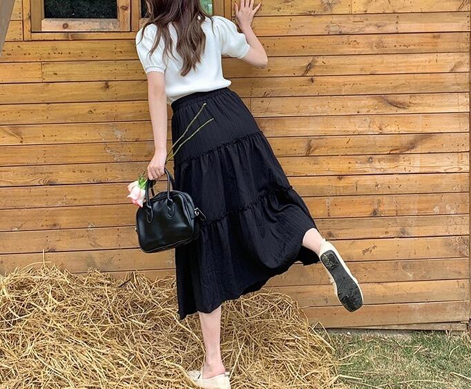 ロング スカート フレア スカート 切り替えスカート ハイ ウエスト Aライン ミモレ 丈 ゆったり カジュアル スタイル ふんわり 4段切替 ポリエステル 美脚 ウエスト ゴム 通気性 動きやすい 韓国 流行り かわいい 可愛い 感動 リラックス きれいめ 楽ちん おしゃれ 無地 夏 サマー アウトドア カジュアル レディース 女性用 20代 30代 XXS XS 高校生 小さいサイズ ミッドドレス