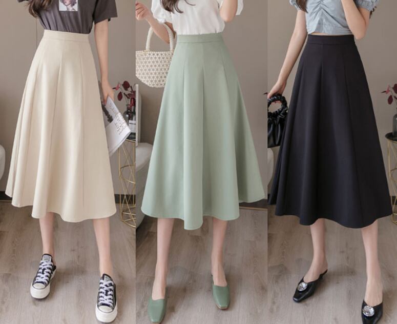 ハイウエスト フレア スカート ミドル丈 ひざ下 無地 Aライン ドレープ アンブレラスカート かわいい 大人可愛い きれいめ シンプル カジュアル 大人 上品 おしゃれ お洒落 かっこいい 大人可愛い 大人女子 こなれ感 ラフ ラブリー キュート ガーリー モード系 10代 20代 30代 40代 レディース デート お出かけ 着回し 普段使い 重ね着 韓国系 オルチャン ファッション コーデ 楽ちん 体系カバー 激安 送料無料 流行 インスタ映え アプリコット オフホワイト グリーン 緑 ブラック 黒