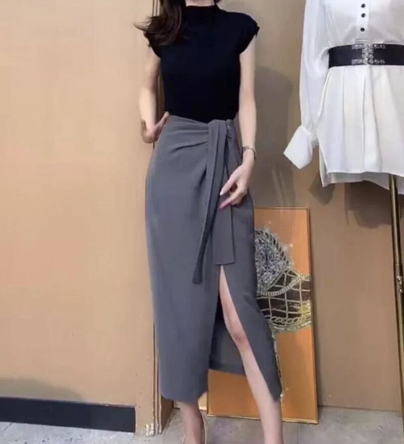 スカート ボトムス ペンシルスカート ラップスカートミモレ丈 ストレート スリット ワントーン 大人女子 カジュアル セクシー HIPHOP スポーティー お洒落 おしゃれ オシャレ 可愛い かわいい レディース S M L 送料込み 送料無料 春 夏 スプリング サマー 海 ビーチ リゾート プール フィット スリム 細身 背中あき 肌見せ 露出 20代 デート ランチ 買い物 ショッピング 観光 旅行 韓国 ハイウエスト 脚長効果 ウエストマーク ウエスト切り替え