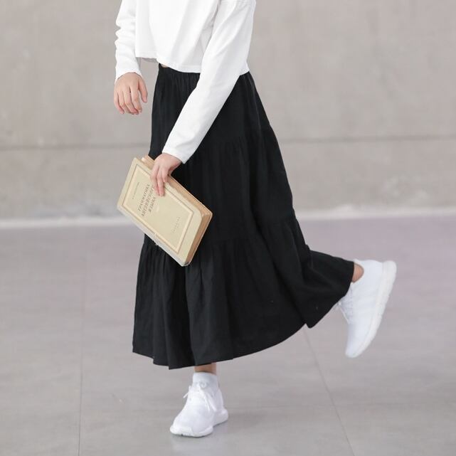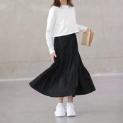 スカート ボトムス ガールズ キッズ ミモレ丈 フレア ティアードスカート ティアード 薄手 ウエストゴム ボリューム モード ハイウエスト ワイド ゆったり ストレッチ 韓国 かわいい 可愛い リラックス きれいめ 楽ちん 春 スプリング 冬 ウィンター ストリート カジュアル レディースこなれ感 着回し クラシカル 上品 女性用 高校生 10代 20代 30代 40代 低身長 ゆったり ゆる ブラック