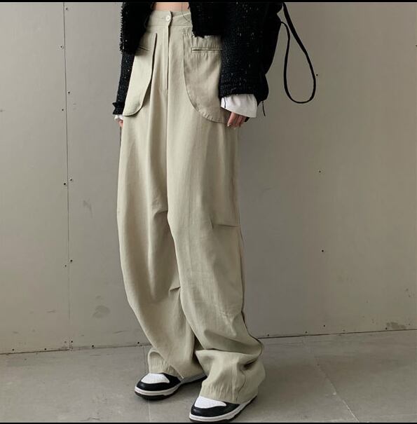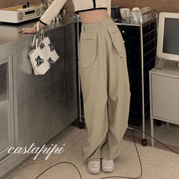 カジュアル ボトムス ロング丈 ワイド パンツ ポケット ボリューム ドレープモップ ハイウエスト ストリート かわいい 大人可愛い きれいめ シンプル カジュアル 大人 上品 おしゃれ お洒落 かっこいい 大人可愛い 大人女子 こなれ感 ラフ ラブリー キュート ガーリー ルーズ モード系 10代 20代 30代 メンズライク レディース デート お出かけ 着回し 普段使い 重ね着 韓国系 オルチャン ファッション コーデ 楽ちん 体系カバー 激安 送料無料 流行 インスタ映え カーキ ベージュ